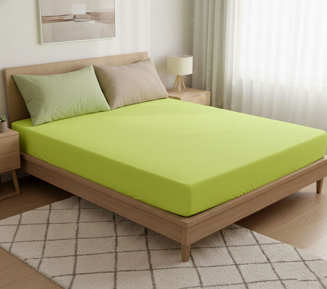 Едноцветни памучни чаршафи: предлагаме зелени долни чаршафи с ластик - фин протектор за матрак, ушити от Ранфорс, висококачествен плат с ниска свиваемост и устойчивост на цветовете.