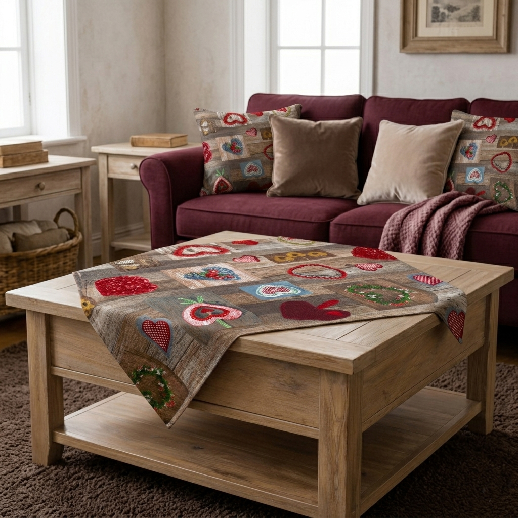 Българско каре за маса в стил винтидж, Шеби шик. Ушито е в 2 размера.
