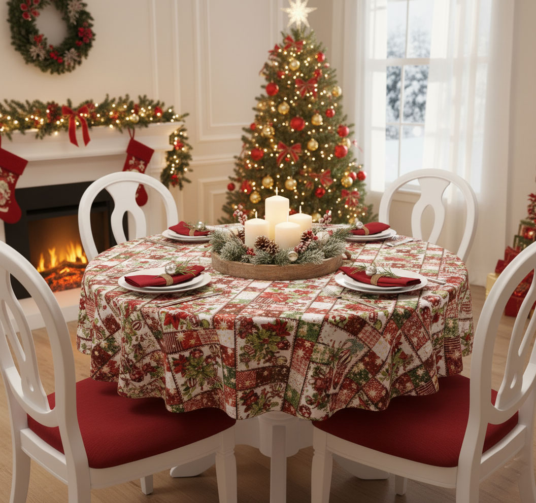 Коледна покривка „Празнична мозайка“ – настроение и уют за трапезата