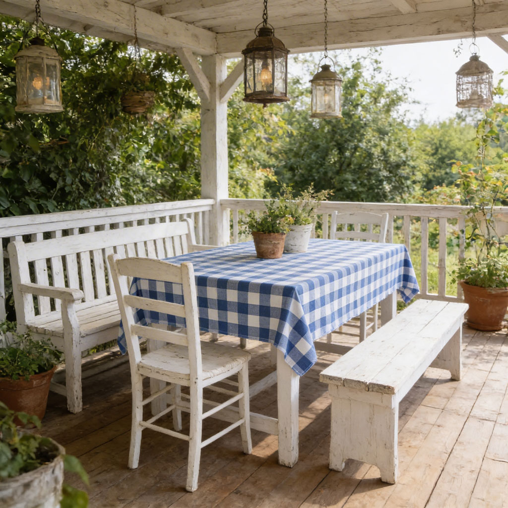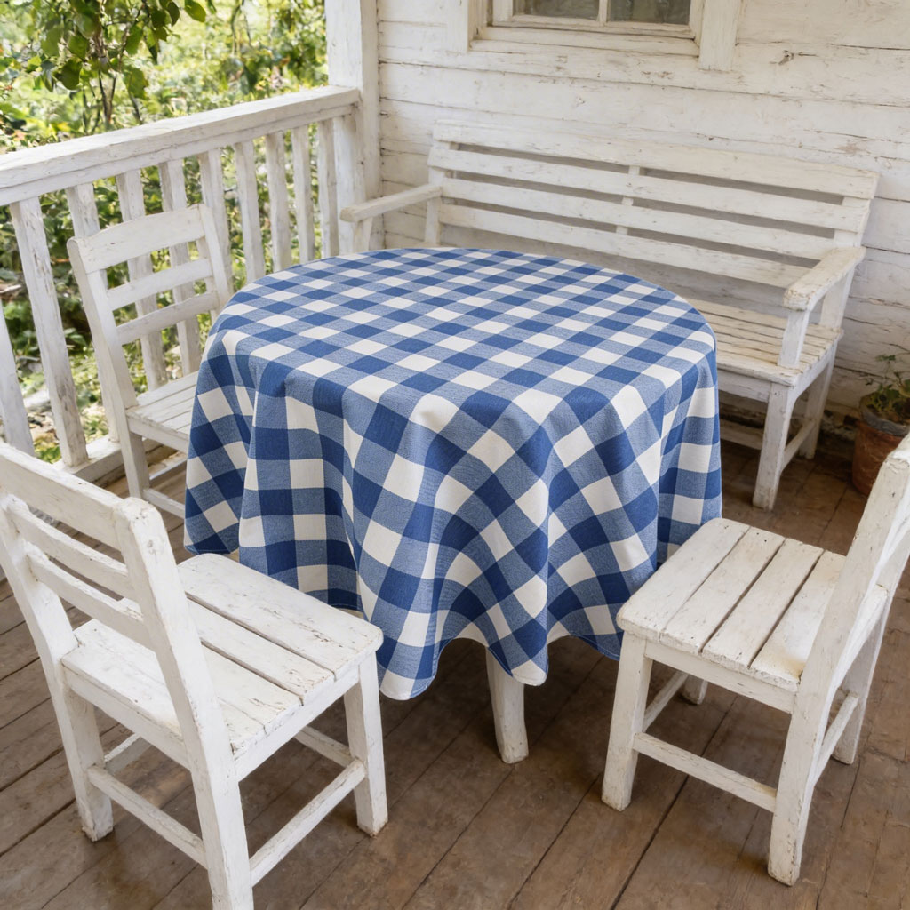 Привлекателна водоустойчива покривка за маса. Цветовете са привлекателни - морски синьо и бяло. Подчертано елегантна, подходяща за различен тип интериор.