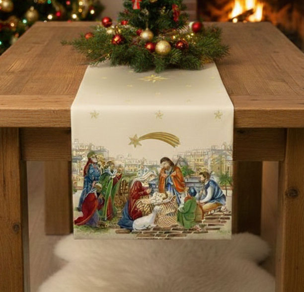 Тишлайферът се използва самостоятелно върху дървен или стъклен плот на маса. Допълнете интериора с красиви коледни символи и щастието ще е пълно.