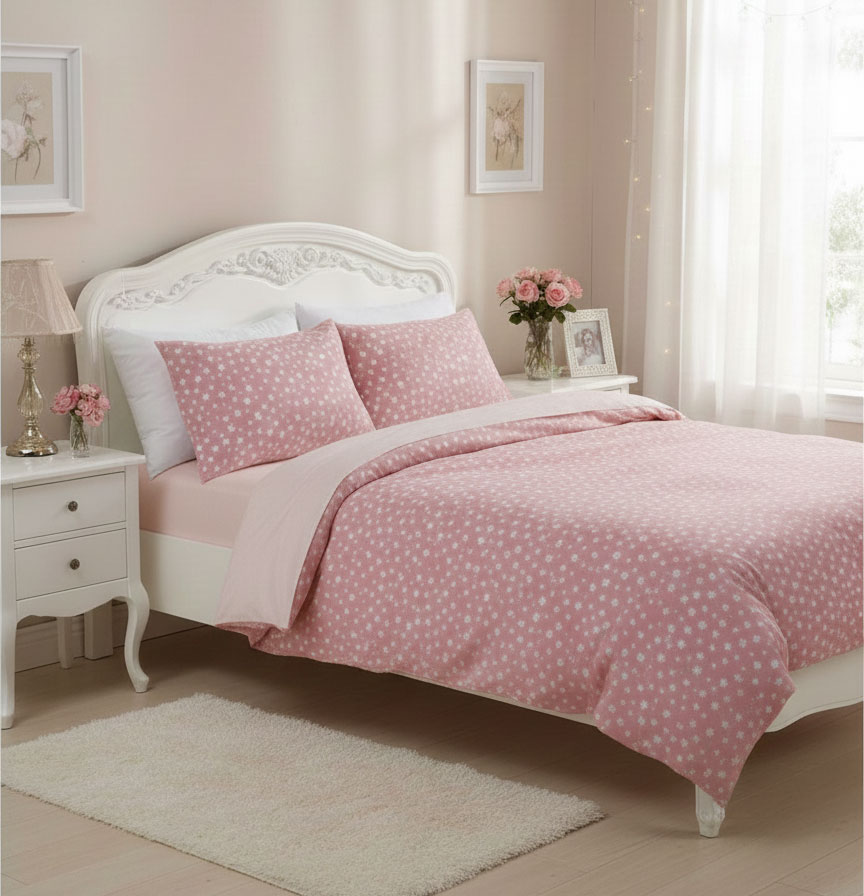 Eдноцветен спален комплект от ранфорс в нежен нюанс праскова - мекота, светлина и деликатен уют. Цветът е топъл и ненатрапчив – подходящ за романтична спалня и за стая на момиче. Носи нежност и хармония. Материята е приятна на допир и устойчива при ежедневна употреба. Спалният комплект се предлага в различни размери и комбинации. Той е практичен избор за дома, за бутиков хотел.