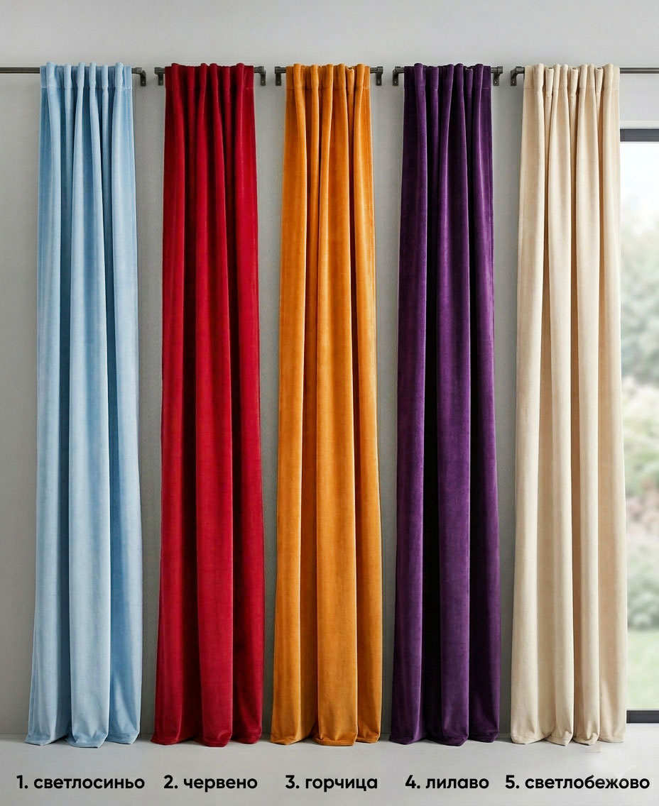 Красиви плътни пердета, готови за окачване. Цветовете са плътни и наситени.