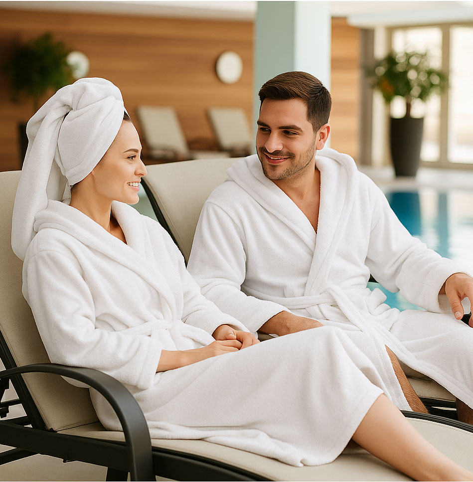 Удобен и елегантен, халатът е подходящ за използване у дома. Подходящ е при посещение на басейн, или на плажа.
