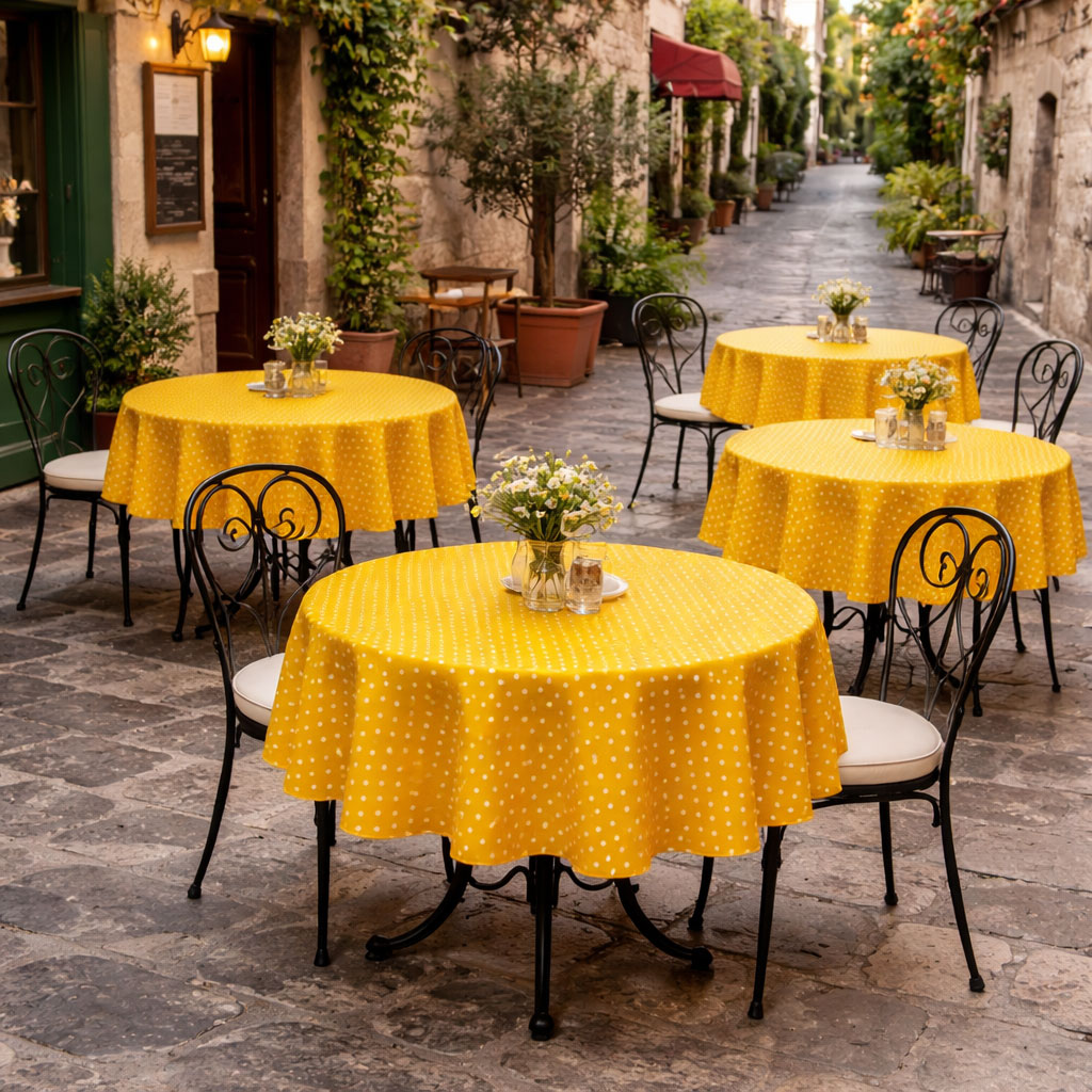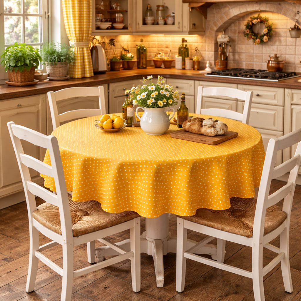 Покривката се предлага във вариант за кръгла, квадратна, правоъгълна и елипсовидна маса.