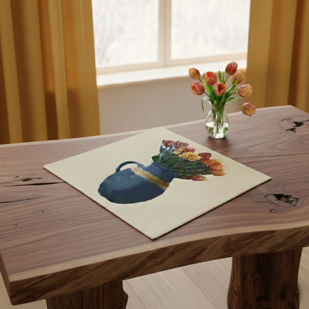 Размерите са 45 х 45 см. Тази салфетка е лесна за поддръжка - препоръчително е да се пере на 40 градуса. Ще се запазите цветовете и дълготрайността на материята.