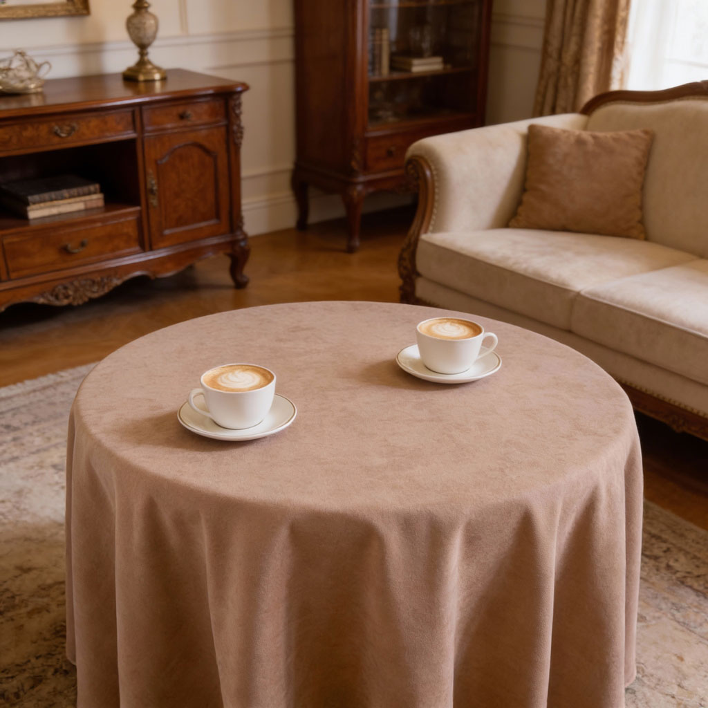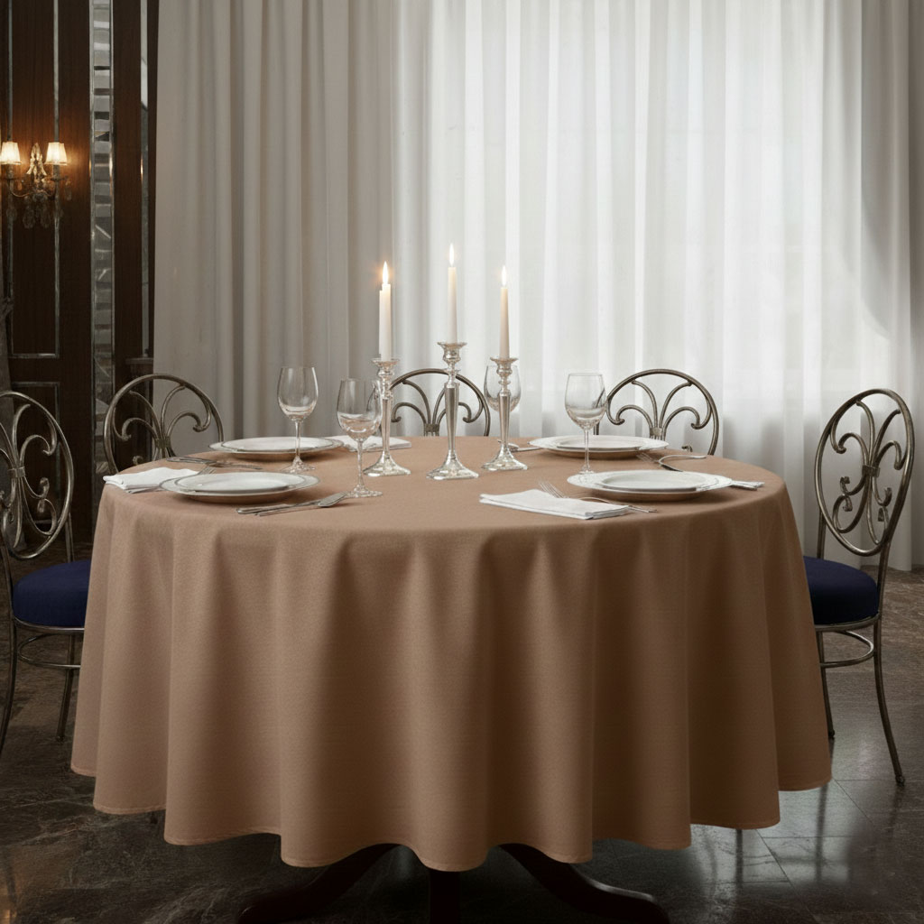 Нека домът приеме този великолепен цвят на капучино. Френски шик с мек пастелен оттенък. Едноцветна покривка за маса, от която сякаш се носи ароматът на горещо капучино.