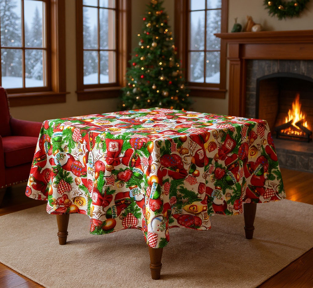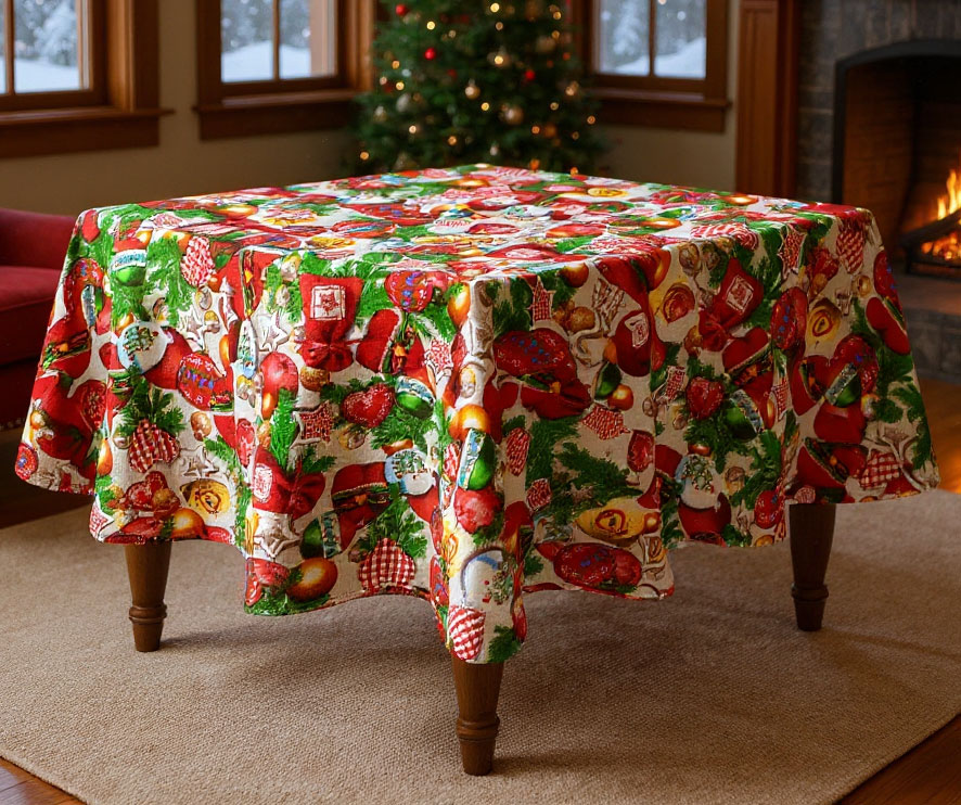 Коледните покривки са много подходящи за използване и в детски градини и заведения, защото се поддържат лесно. Съчетайте с червени или зелени салфетки. Използвайте бяло за тържественост.