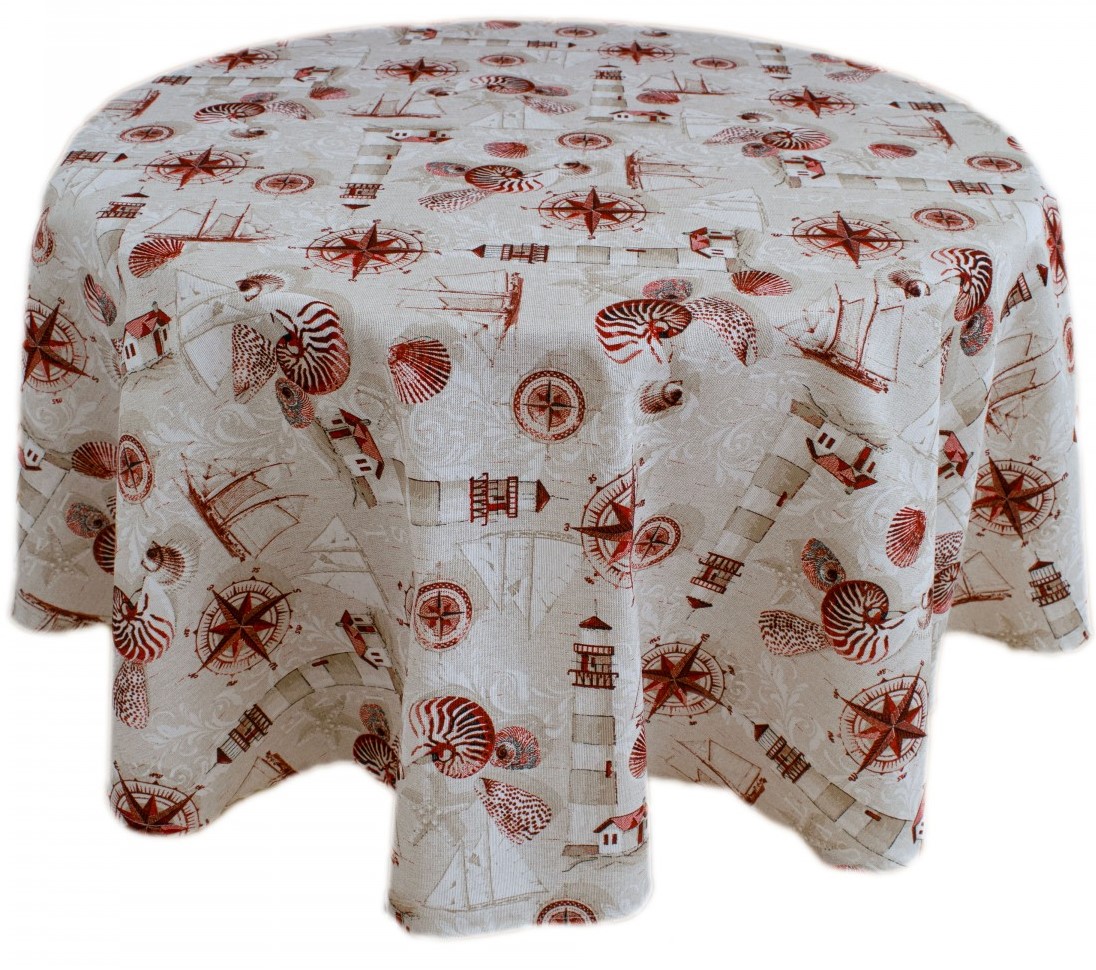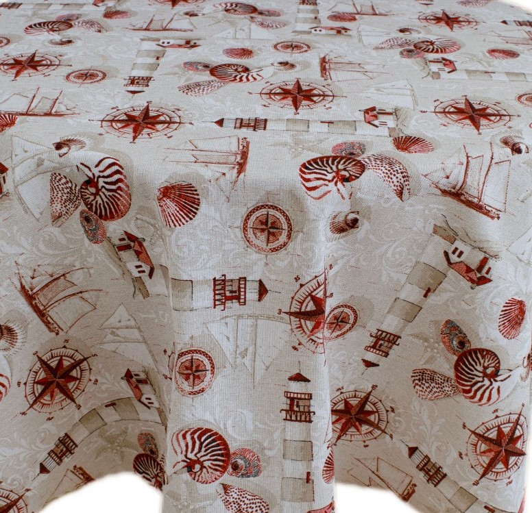 Красива тематична покривка за маса с морски мотиви. Чудесно съчетание на класически морски елементи и цвят - бордо. Разказваме ви приказка за щастливия край на едно пътешествие. Фарът е символ на брега, за който мечтаем.