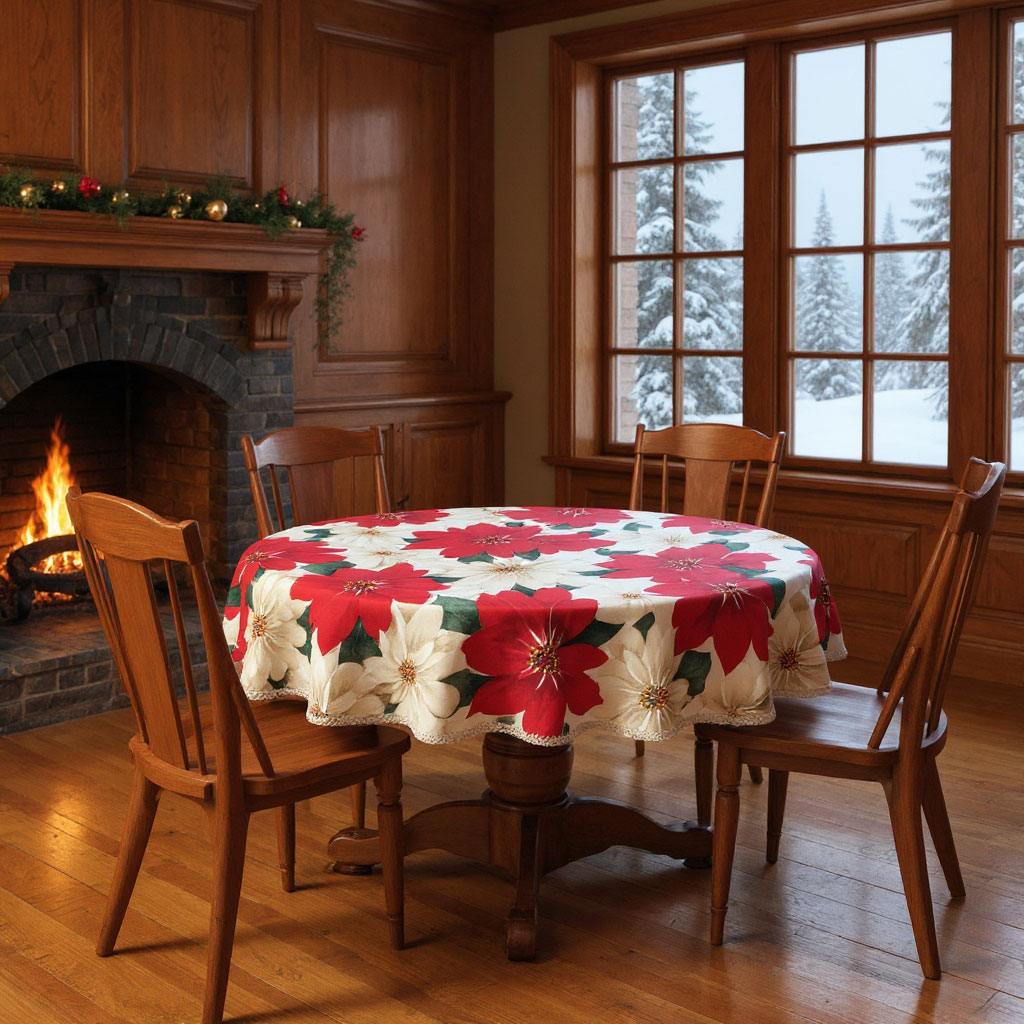 Коледни покривки за маса, лесна за подръжка. Ушити са от много приятна материя, която пада леко и е подходяща за използване с различни форми на масата и с различни аксесоари.