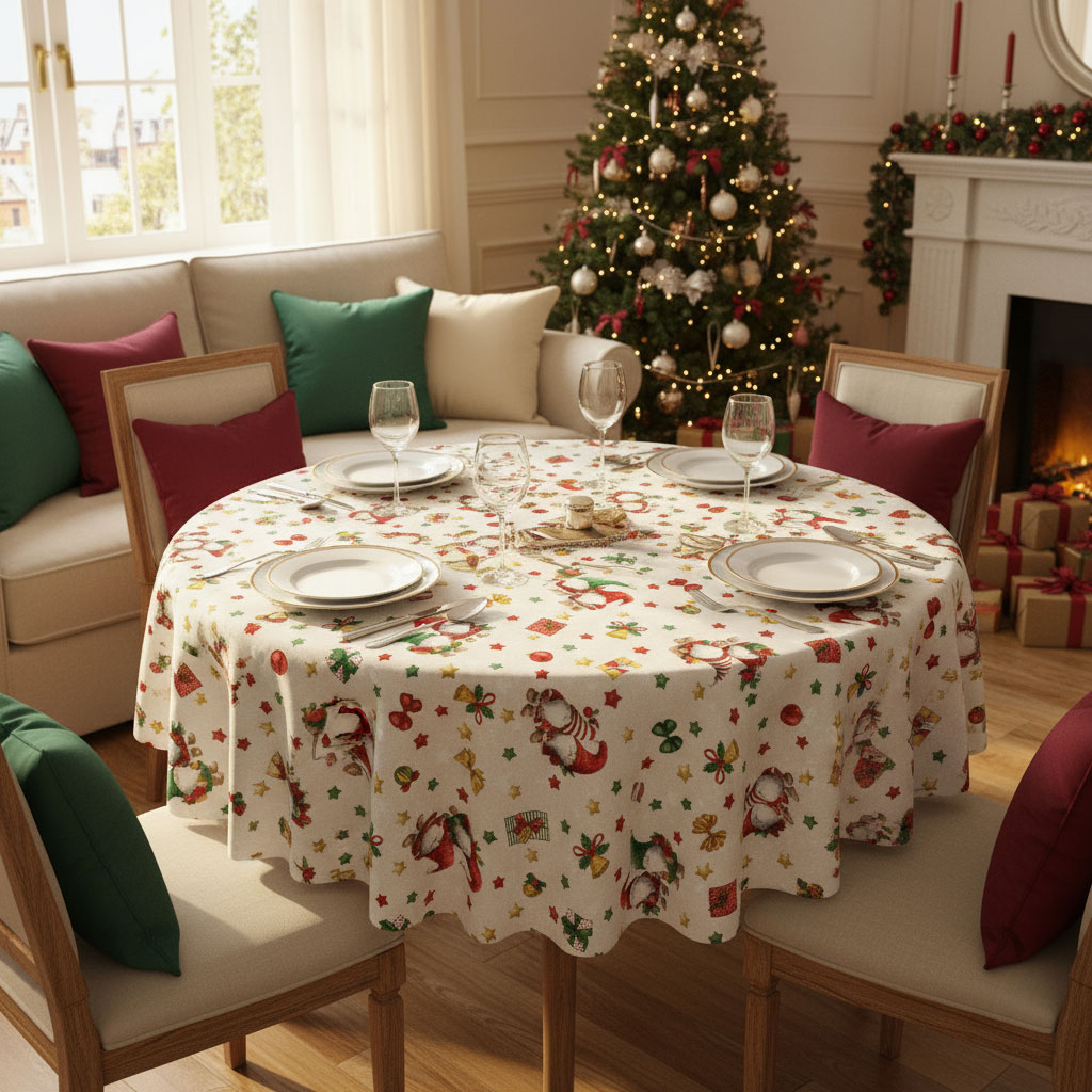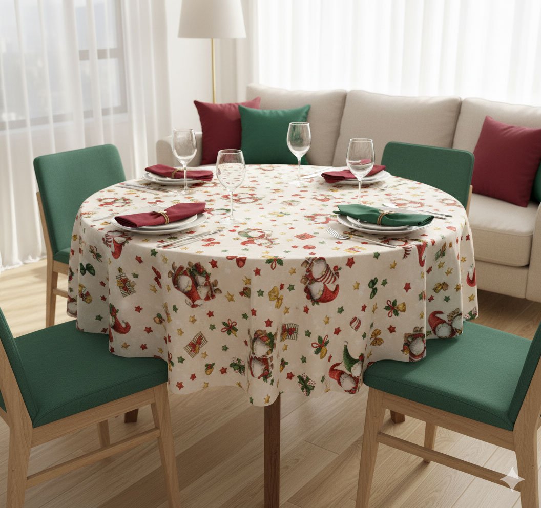 Предимствата на тази покривка са не само нейната декоративна стойност, но и функционалността ѝ. Тя е идеална както за украса, така и за сервиране по време на коледни обеди и вечери. Елфите, които красят дизайна, придават весел и игрив акцент, който ще радва както възрастни, така и деца. Независимо дали сте у дома или в заведение, тази коледна покривка ще направи празника ви още по-специален.