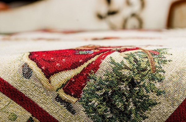 Коледната покривка е изработена от висококачествена материя, в типични коледни цветове.