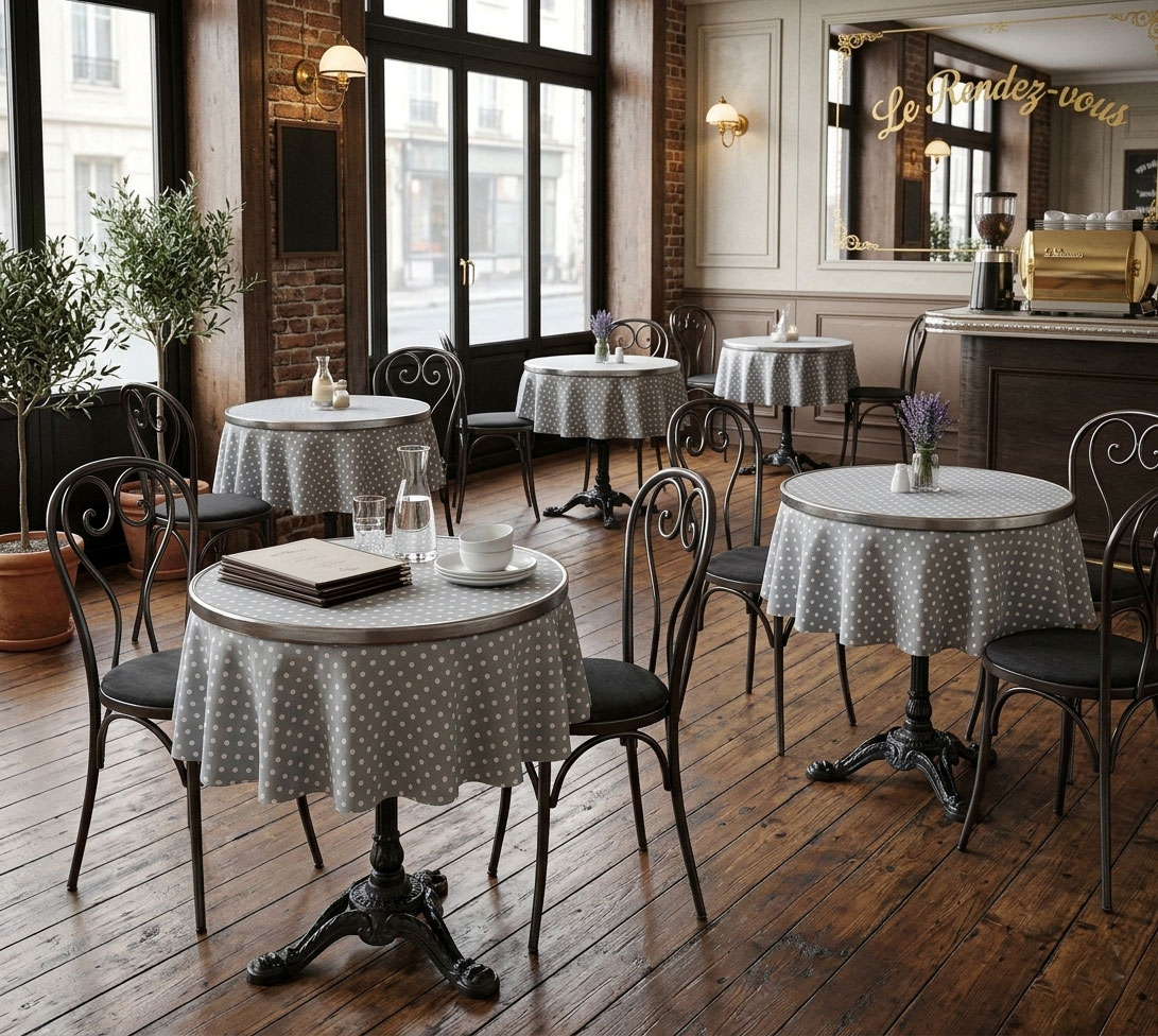 Покривката се предлага във вариант за кръгла, квадратна, правоъгълна и елипсовидна маса.