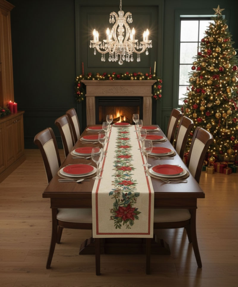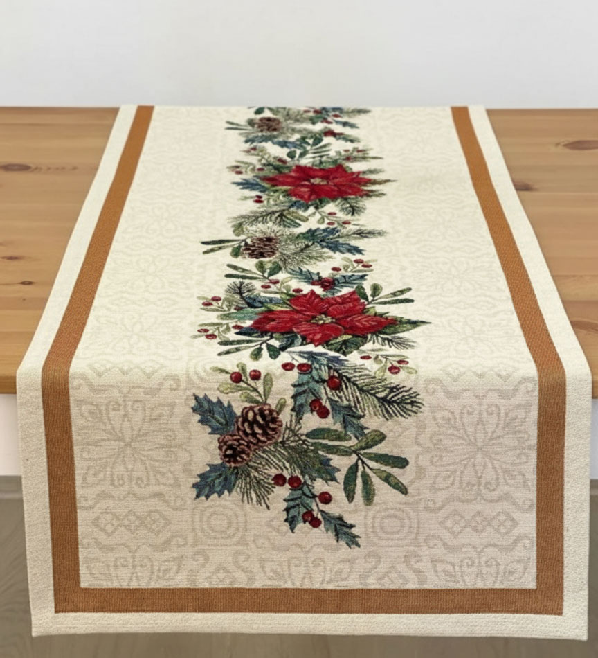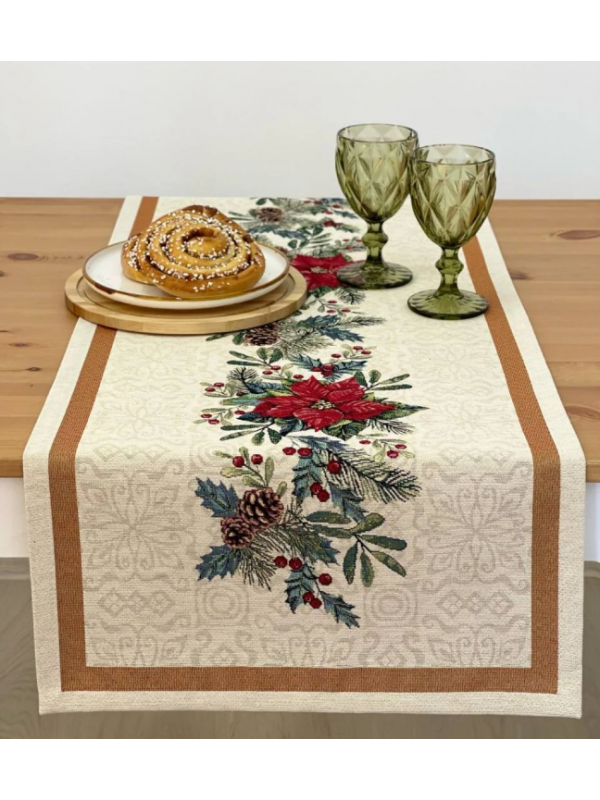 Коледният тишлайферът с красив гирлянд е подходящ за квадратни, правоъгълни и кръгли маси с различен размер. Поставя се успоредна на ръба на масата или по диагонал. Може да се постави като основна или втора покривка.
