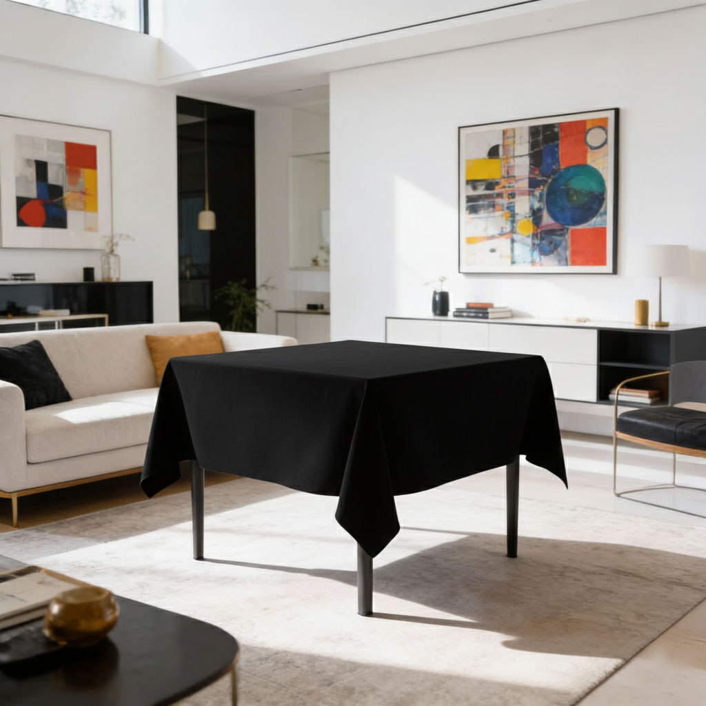 Черна покривка за маса от водоустойчив плат - 135х135 см