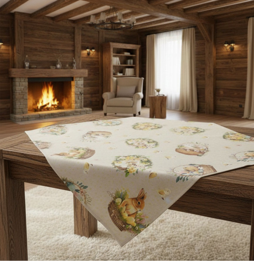Да създадем неповторима атмосфера за най-светлия пролетен празник с това красиво великденско каре за маса. Изработено е от чудесен плат – комбинация от памук и полиестер. Тази материя съчетава мекота, здравина и лекота на поддръжка. Идеално е за празничната трапеза.
