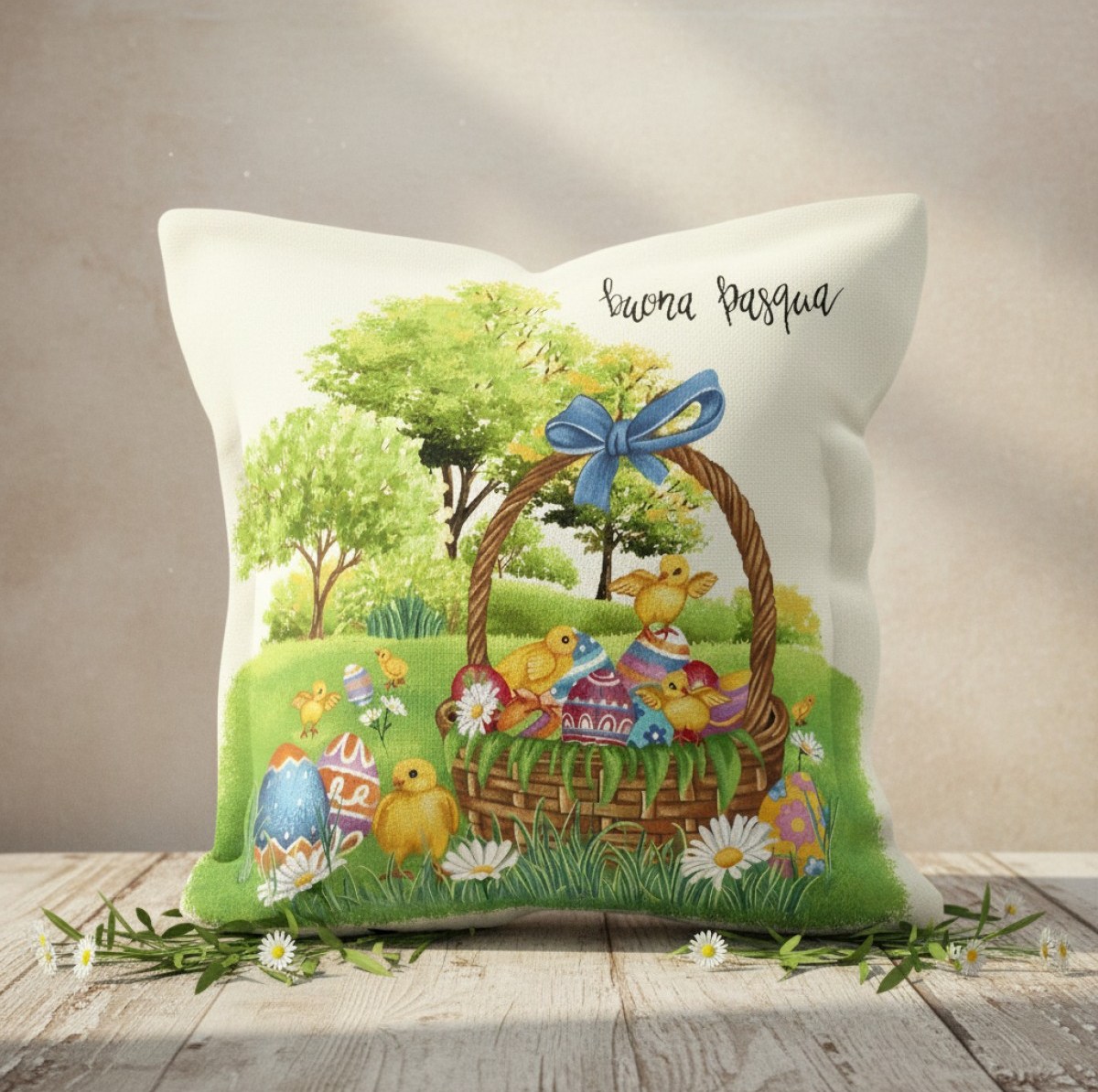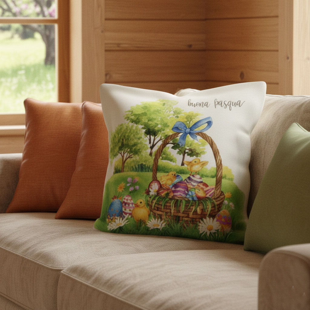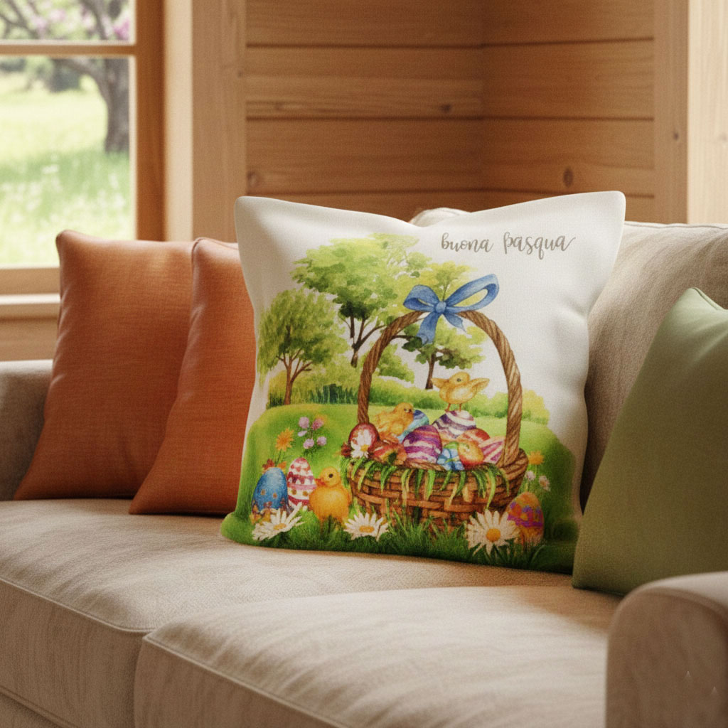 Използвайте я самостоятелно или я комбинирайте с едноцветни калъфки в пастелни тонове като жълто, зелено или синьо. Добавете други декоративни елементи с великденски мотиви.