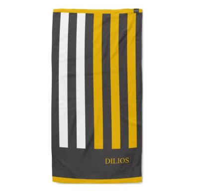 Тази плажна хавлия с дизайн в графитено сиво, бяло и горчица е чудесен избор за летния сезон. Съчетанието на вертикални ленти придава изчистена и модерна визия. Изработена от 100% висококачествен памук, с плътност 375 г/м², тя гарантира отлично попиване и мекота при допир с кожата.