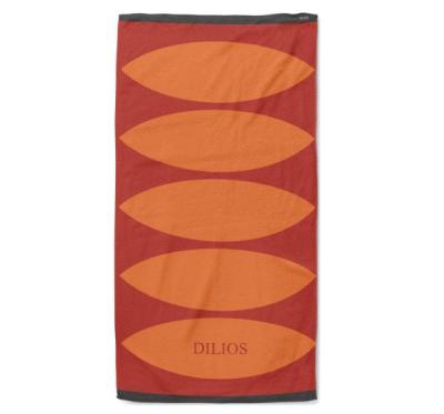 Превърнете своя ден на плажа в истинско удоволствие с тази стилна плажна хавлия от 100% висококачествен памук. С размер 90/170 см, тя е достатъчно голяма, за да ви осигури комфорт върху пясъка, шезлонга или до басейна. Отличава се с екзотична визия в преливащи се пастелни тонове – комбинация от меко оранжево и керемидено червено, подредени в елегантен геометричен мотив.