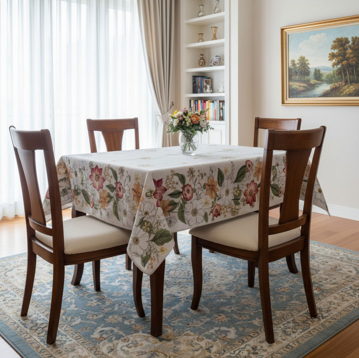 Тази покривка е отличен избор за пролетни и летни дни, и през останалата част от годината, когато ти се иска домът да изглежда топъл и приветлив. Подходяща е както за всекидневно сервиране, така и за неформални събирания с приятели или семейни вечери.