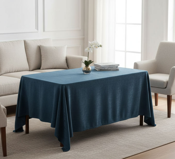 Тъмносинята покривка от софт е създадена за онези моменти, когато искаме масата да изглежда не само подредена - и стилна. Изработена е от висококачествен полиестер – материал, който съчетава устойчивост и мекота. Платът пада тежко, което създава елегантни гънки, а повърхността напомня кадифе – нежна, матова и съвършена.