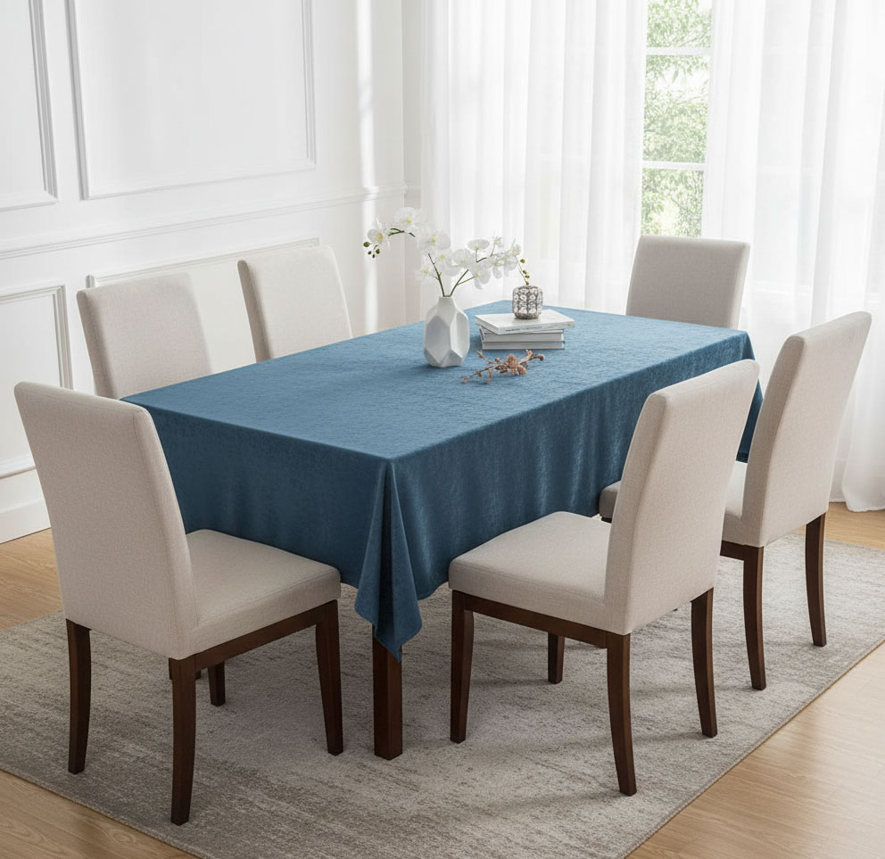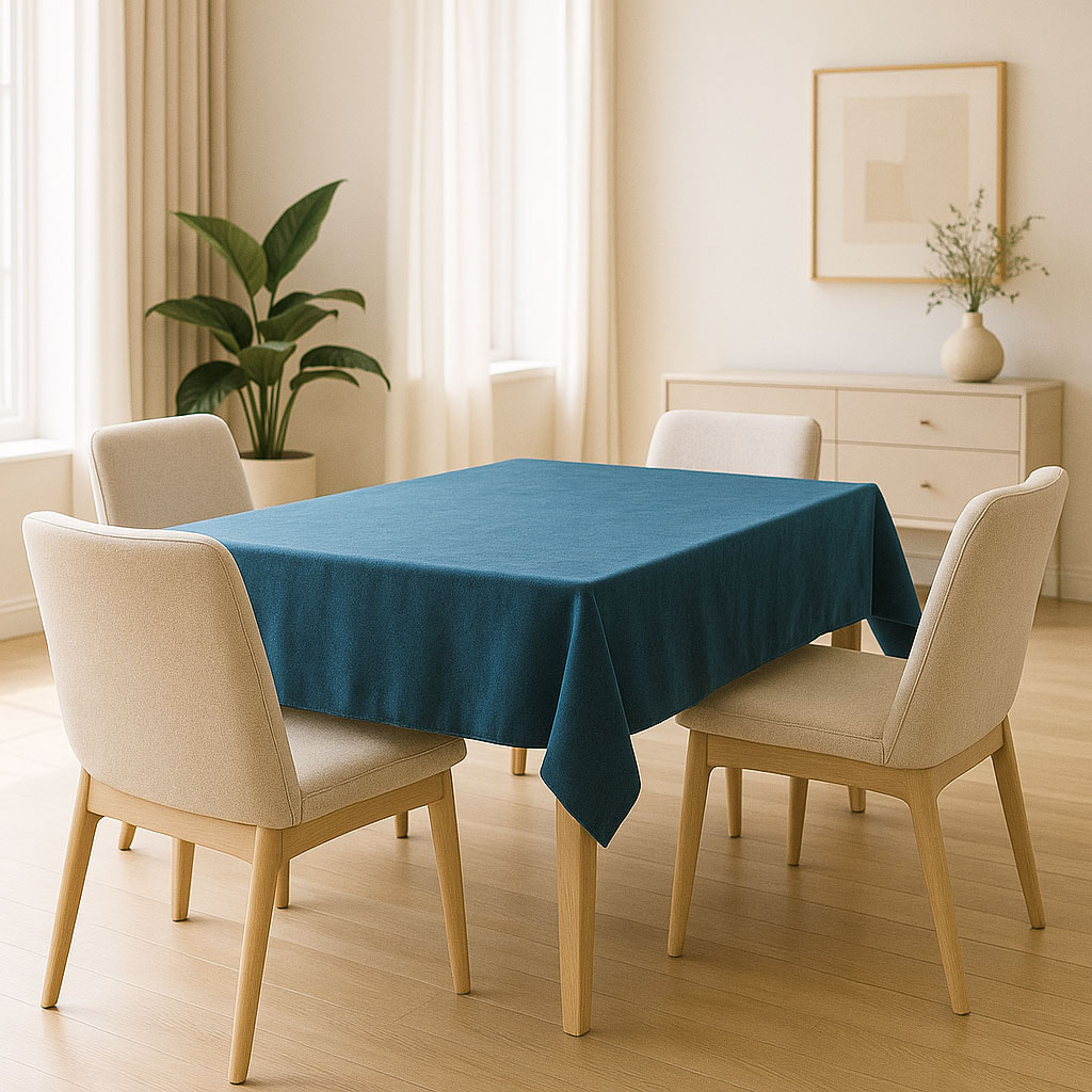 Избери тъмносинята покривка, ако искаш стил, стабилност и усещане за завършеност на масата.