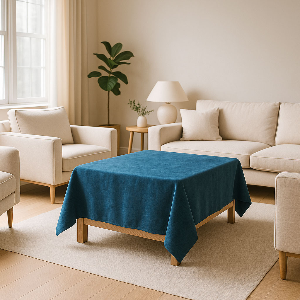 Тъмносиният нюанс е изключително подходящ за класически или съвременен интериор – стои благородно, без да натрапва присъствието си. Пере се лесно, не се мачка, и запазва вида си дори при интензивна употреба.