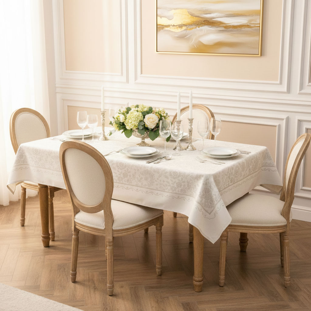 Тази жакардова покривка за маса е идеалното допълнение за празнични поводи, официални вечери или просто за да внесете усещане за уют и стил в ежедневието. Изберете я за своя дом и създайте изискана трапезария, която впечатлява без усилие.