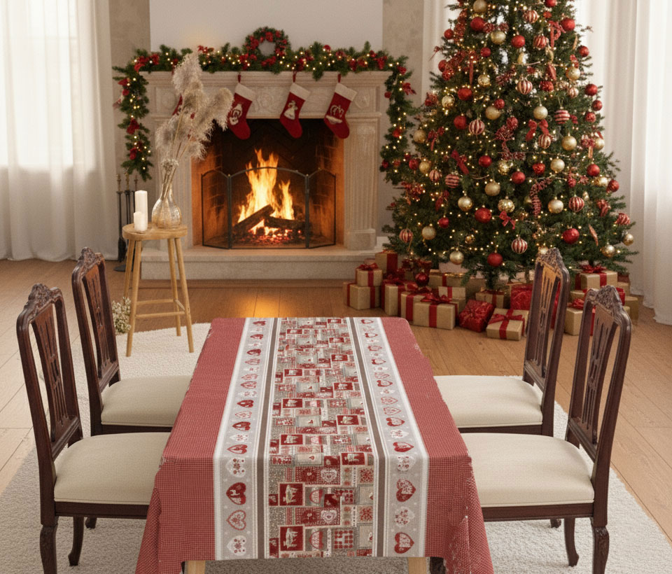 Тази покривка е практичен аксесоар и символ на уют, споделеност и празнична радост, която ще превърне всяко хранене в топъл семеен спомен.