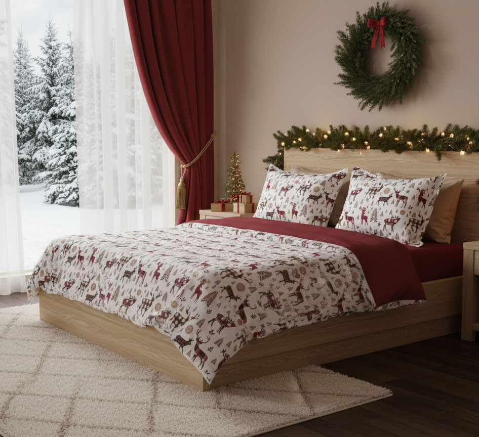 Предлага се в разнообразни размери и комбинации, за да бъде идеалният избор за всяко легло – от единични комплекти до големи фамилни размери. Подарете си спокойствие, празничен дух и истински комфорт с този прекрасен сезонен комплект.
