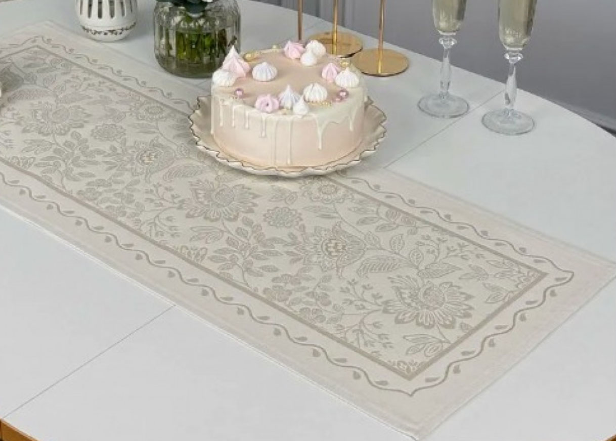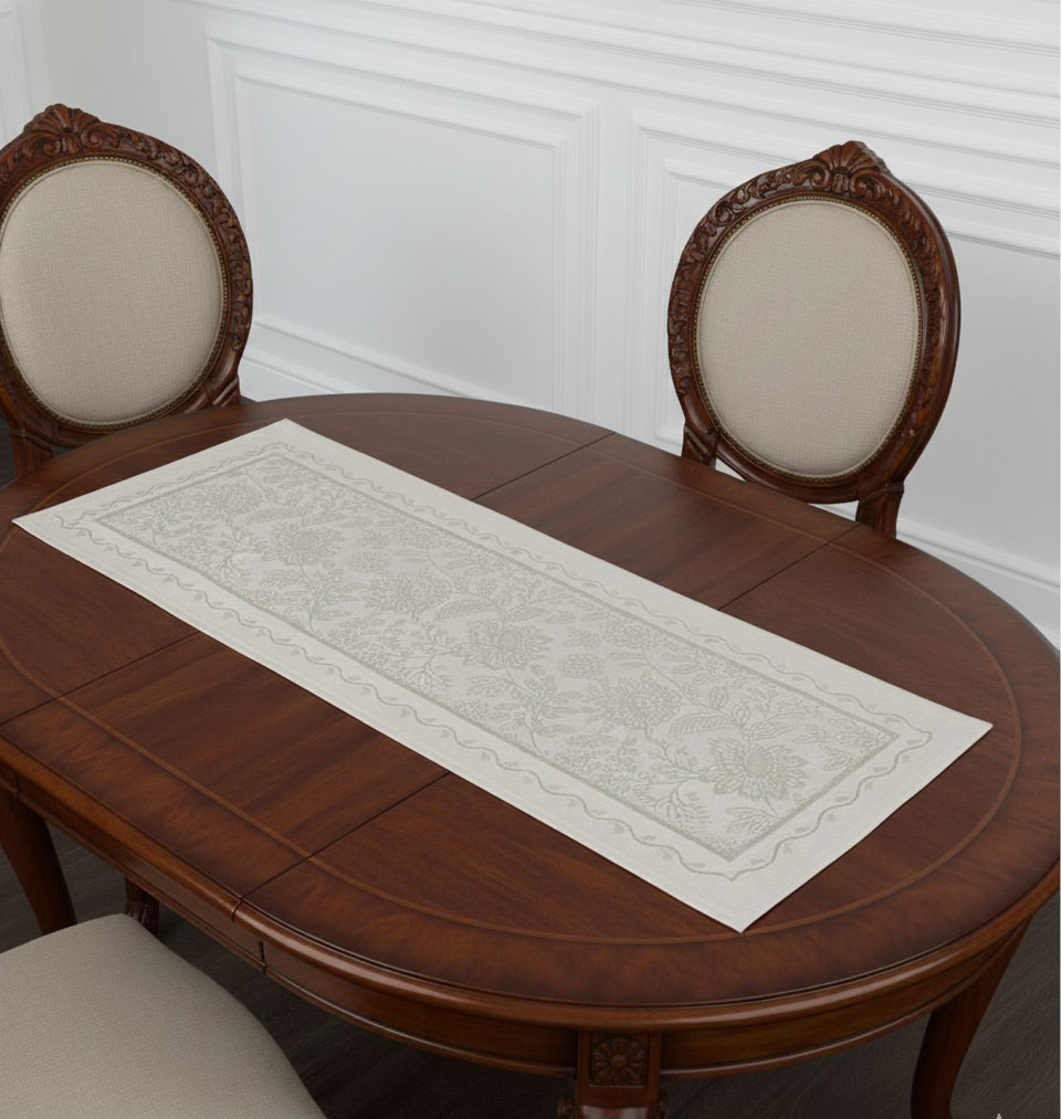 Жакардовата тъкан е с много високо качество, устойчива на ежедневна употреба и подходяща за специални поводи и за стилно ежедневие. Тишлайферът запазва формата. Размерът 40х135 см го прави отличен избор за правоъгълни и овални маси, както и за по-малки трапезни зони.