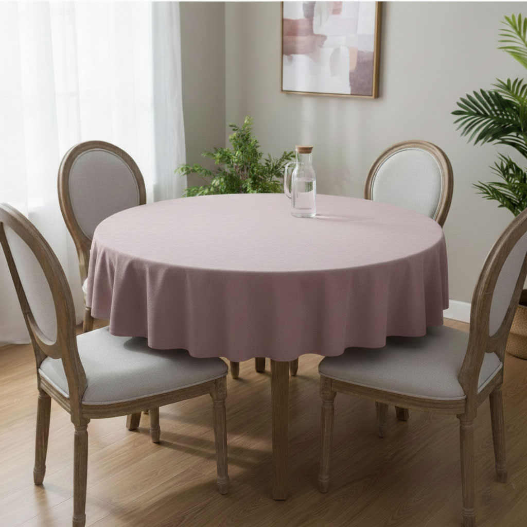 Покривката е изработена от висококачествен плътен полиестер. Материята пада тежко и равномерно. Образува естествени, меки дипли около масата. Това придава усещане за подреденост и финес, независимо дали масата е кръгла, правоъгълна или елипсовидна.