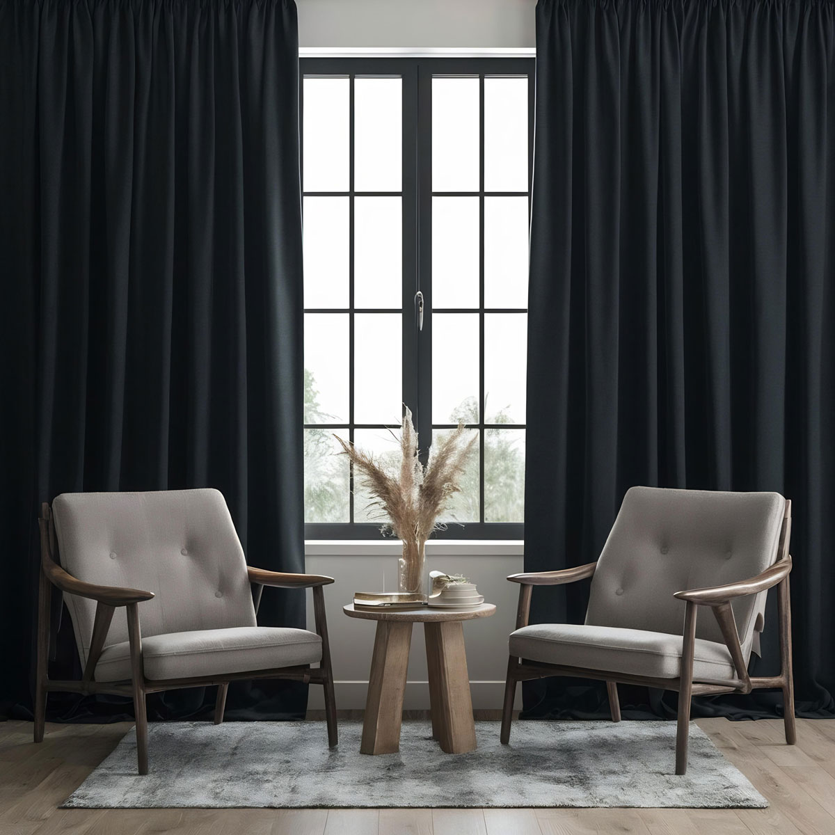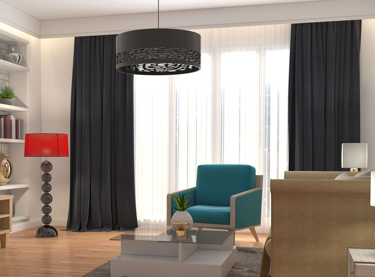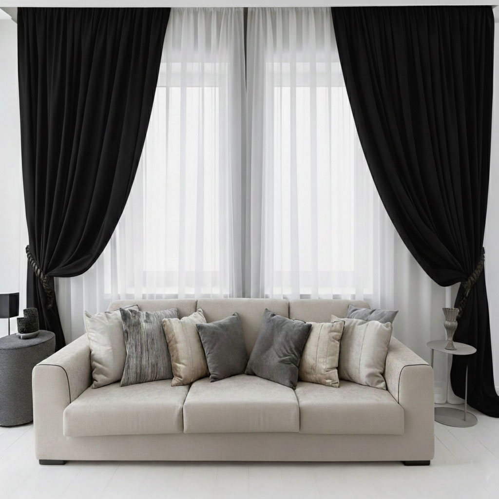 Плътното перде е от полиестер - елис, лесно за поддръжка.