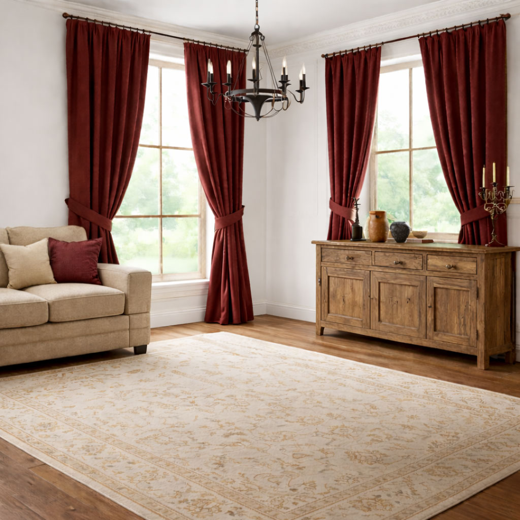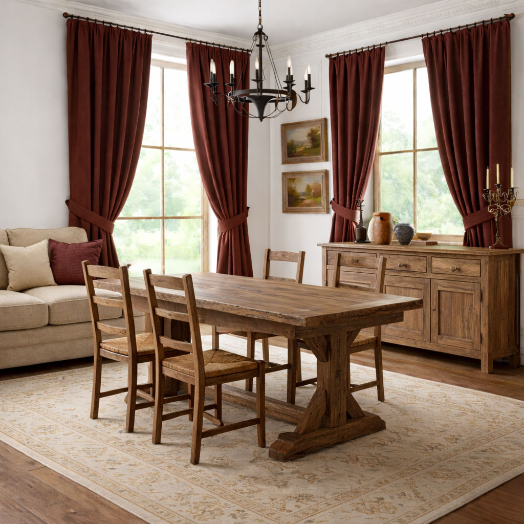 Плътни пердета в пастелните тонове на земята - бежово. Представете се пролетта, когато нивите са изорани и очакват семената, от които да се пръсне благодат.