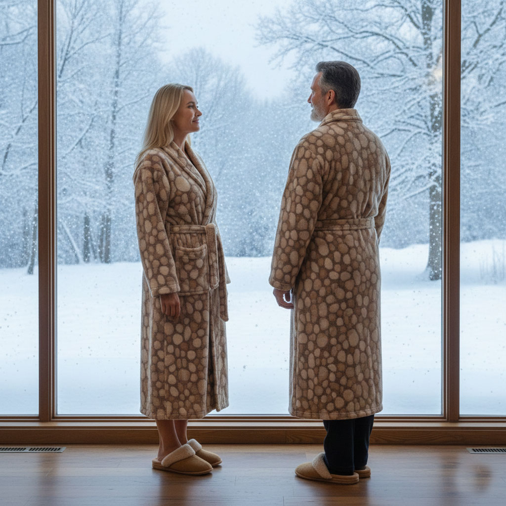 Домашният халат е създаден с мисъл за онези моменти, в които искаме да забавим темпото и да се погрижим за себе си. Изработен е от висококачествен микрофибър (полиестер). Пази топлината, дава усещане за мекота. Материята е лека, но плътна, не дразни кожата и е подходяща за ежедневна употреба през по-хладните сезони.