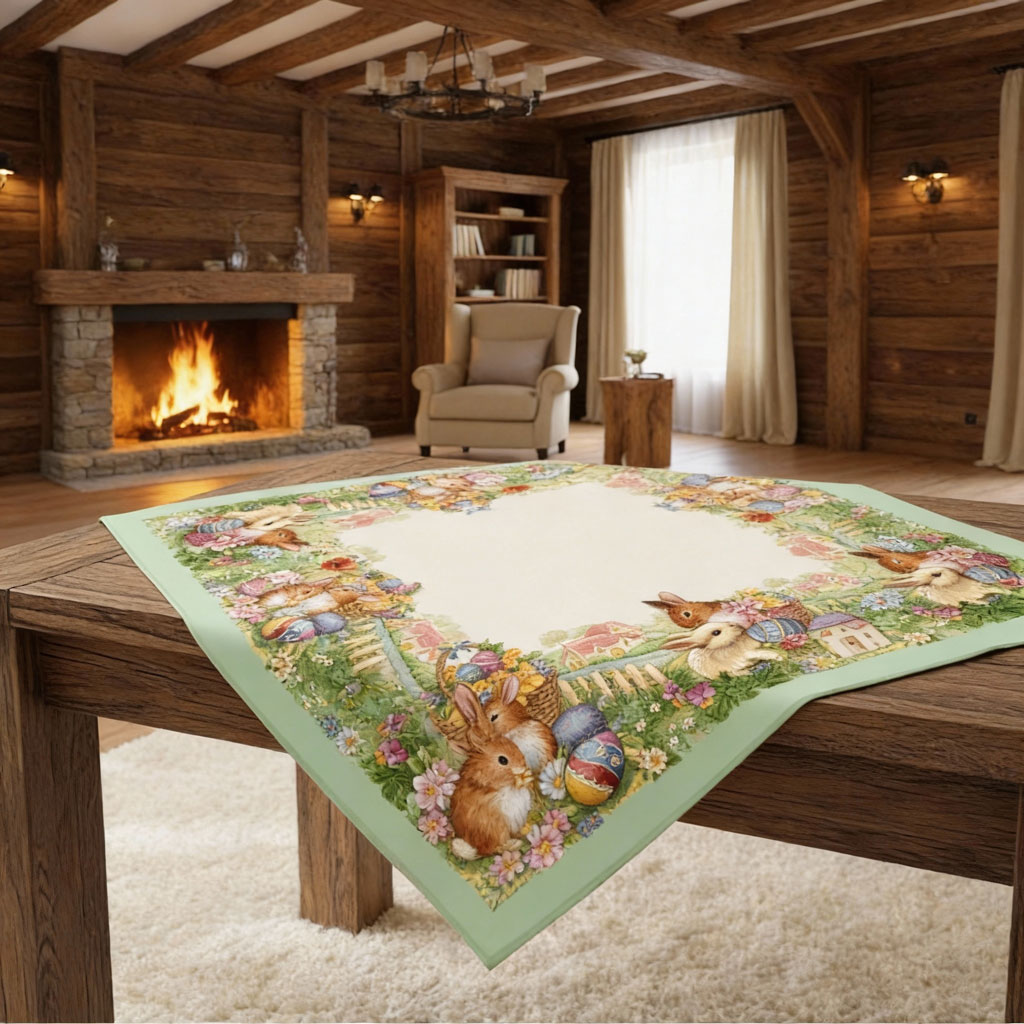великденско каре за маса от жакард 90×90 см е предназначено за хора, които търсят великденска украса с умерена естетика и дългосрочна стойност. Десенът е прекрасен, цветовете и материята - устойчиви.