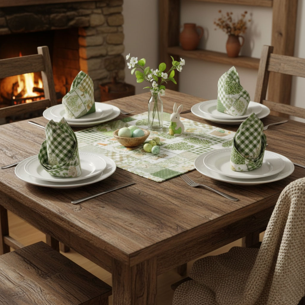 Тези салфетки се съчетават отлично с едноцветни покривки и тишлайфери в светли, натурални или зелени тонове, както и с керамични съдове и дървени аксесоари. Подходящи са за класически, скандинавски, кънтри и еко интериори, както и за къщи за гости и малки бутикови хотели, които търсят ненатрапчива сезонна декорация с висока естетична стойност.