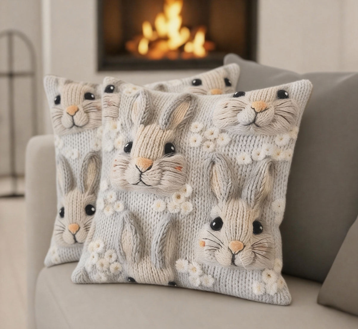 2 великденски калъфки дава сезонен уют, без да бъде натрапчив. Използвани са меки, естествени тонове. Текстурата напомня ръчно плетиво и създава усещане за топлина и дом.