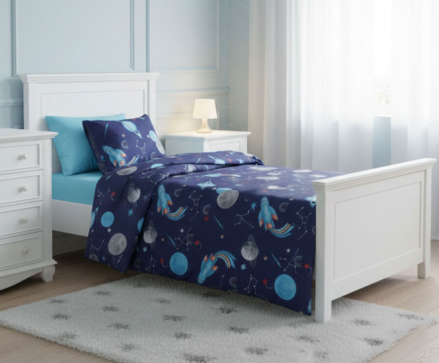 Детски спален комплект от ранфорс „Космическо приключение“ - съчетава