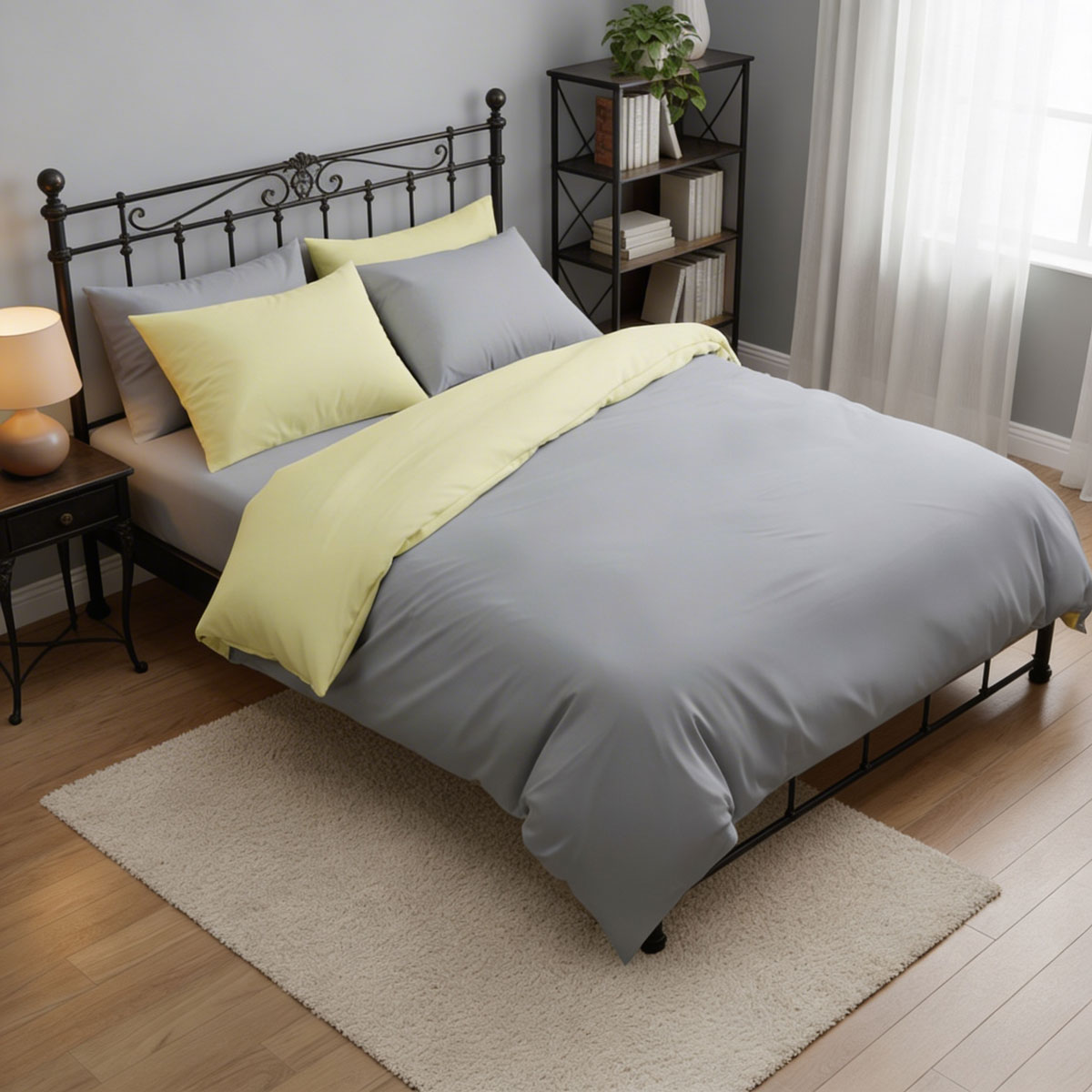 Олекотена завивка с възможност за избор - аристократична комбинация от жълто и сиво. Пухкава и мека, подходяща за съчетаване с едноцветни чаршафи. Материята е висококачествен памук ранфорс и силиколизирана вата. Комбиниция за тези, които харесват спокойната атмосфера!