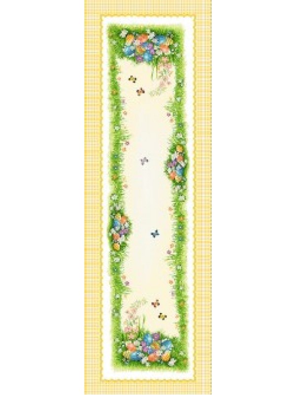 Жълтият кант добавя топлина и слънчево настроение. Великденските яйца са вплетени деликатно в композицията – символично и стилно.