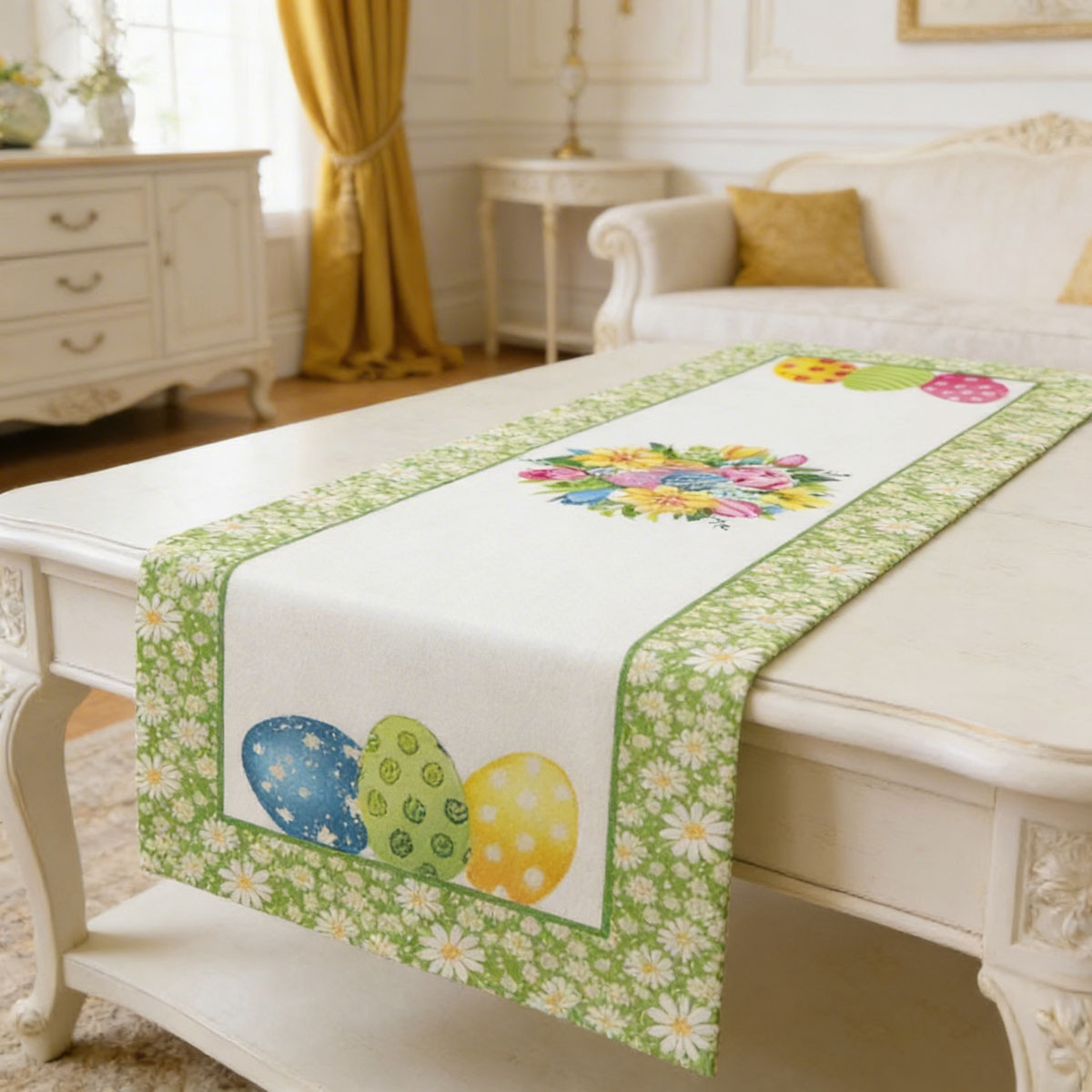 Подходящ е за класически интериори, прованс и рустик стил, къщи за гости и бутикови пространства. Това е великденски текстил, който носи свежест и чистота, като оставя място за личния почерк в декорацията.