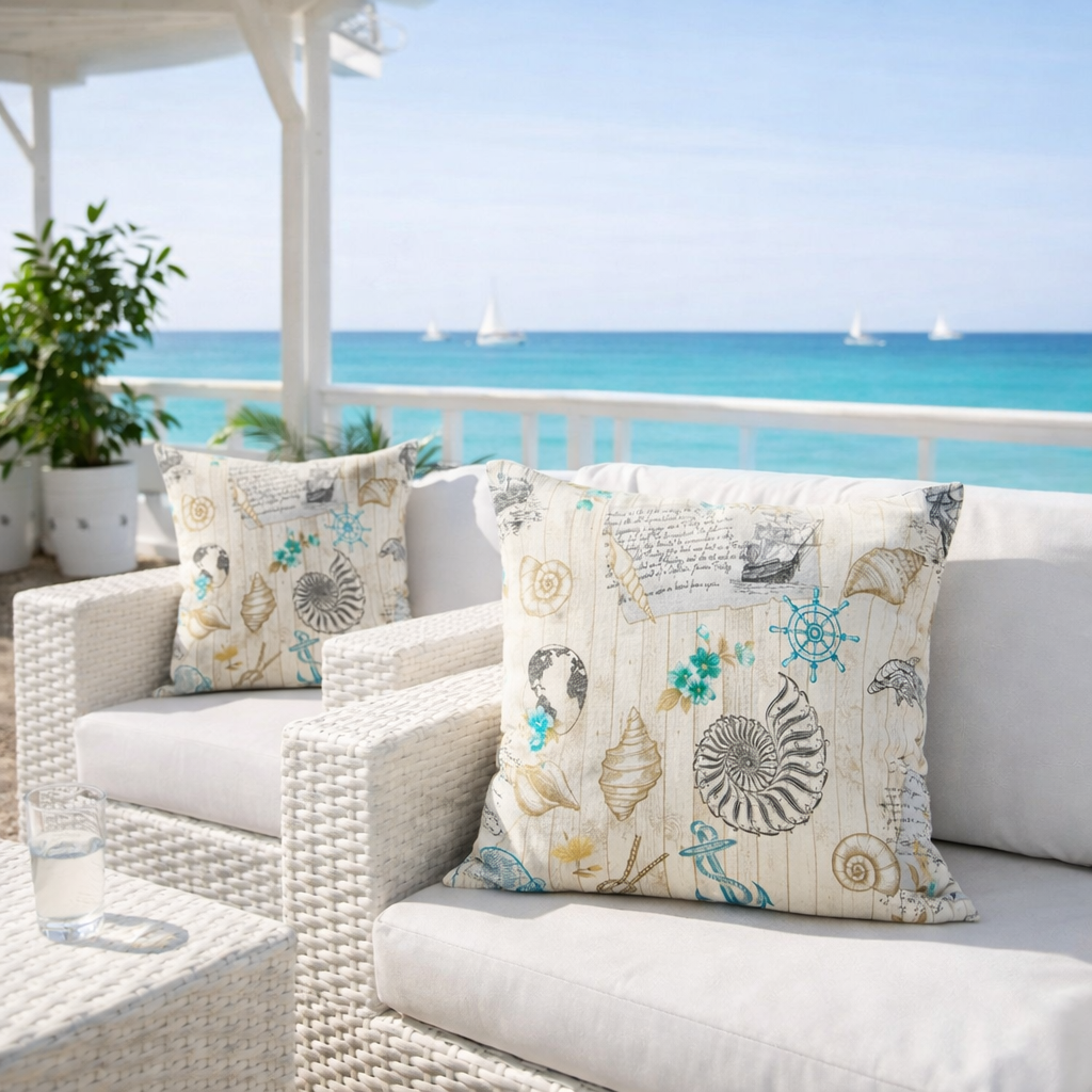 Тези водоустойчиви декоративни калъфки в морски стил са за хора, които търсят атмосфера. Дизайнът, вдъхновен от морски карти, раковини и навигационни елементи, създава усещане за свобода, пътешествие и лекота – ценности, които никога не излизат от мода.