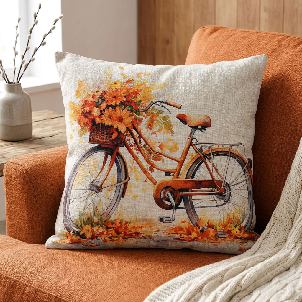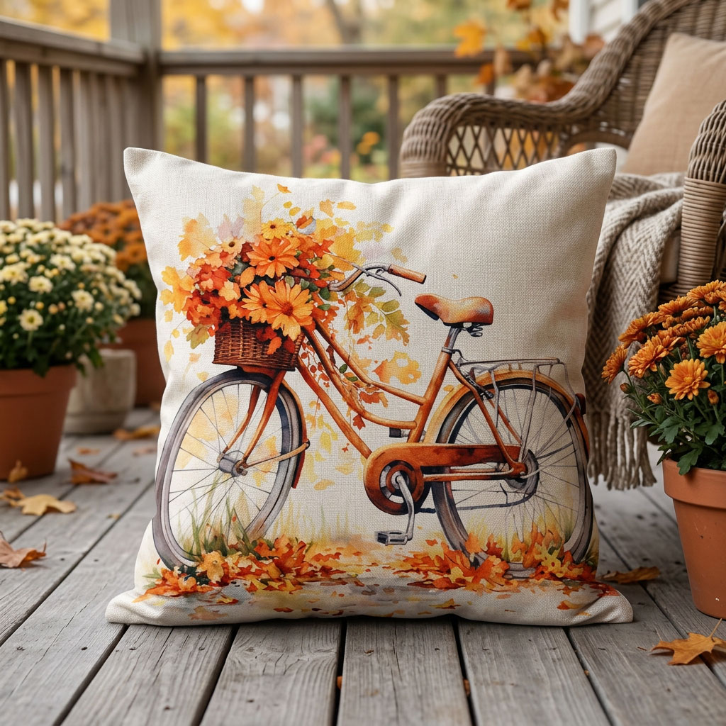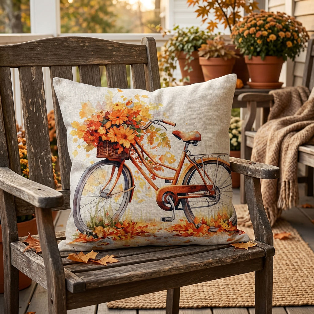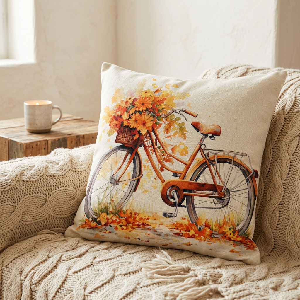 Декоративни калъфки, които допълват пространството и разказват история. Винтидж мотив на ретро велосипед в топли есенни цветове. Те носят настроение – на спокойствие, уют и спомени за красиви моменти.