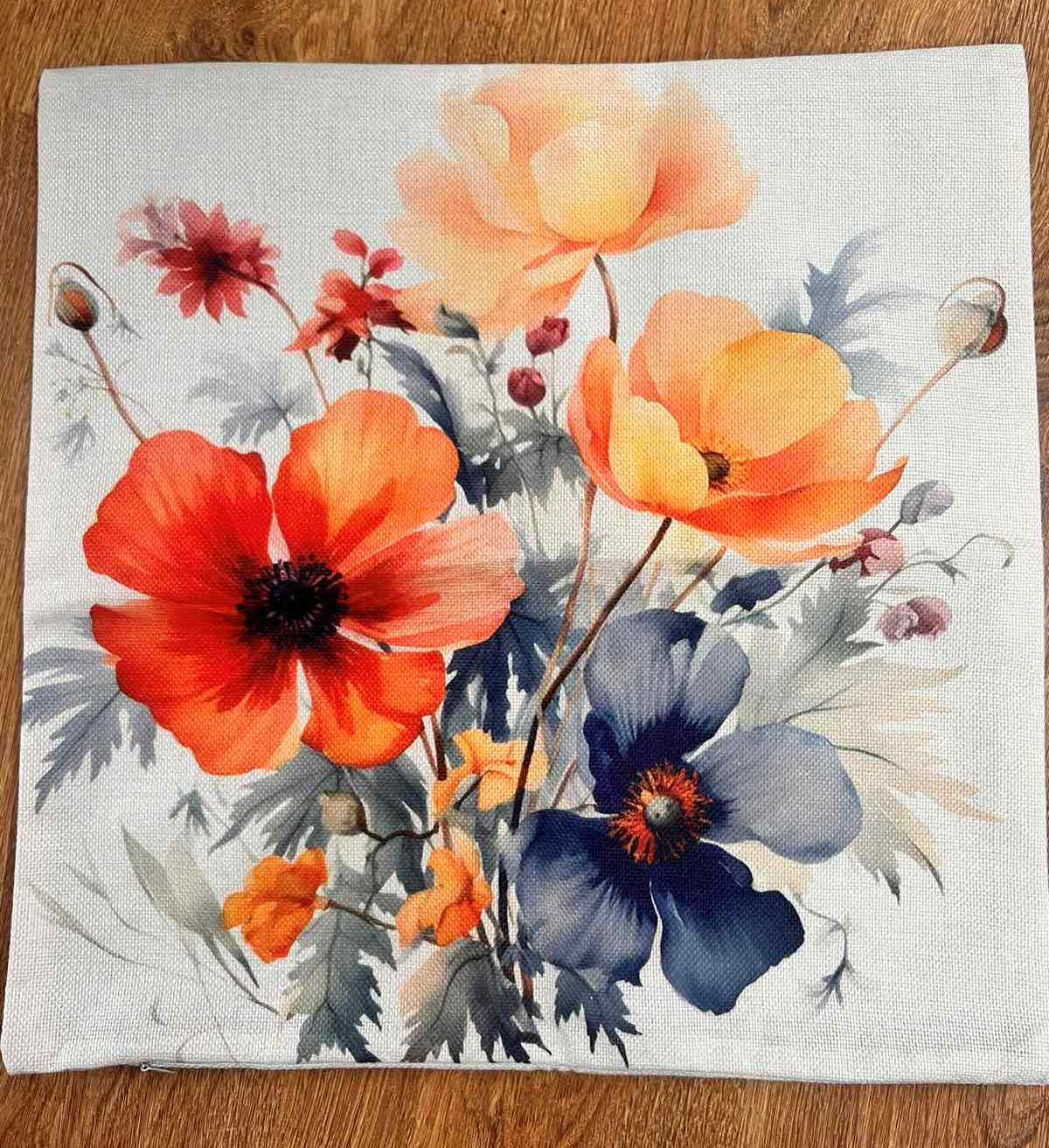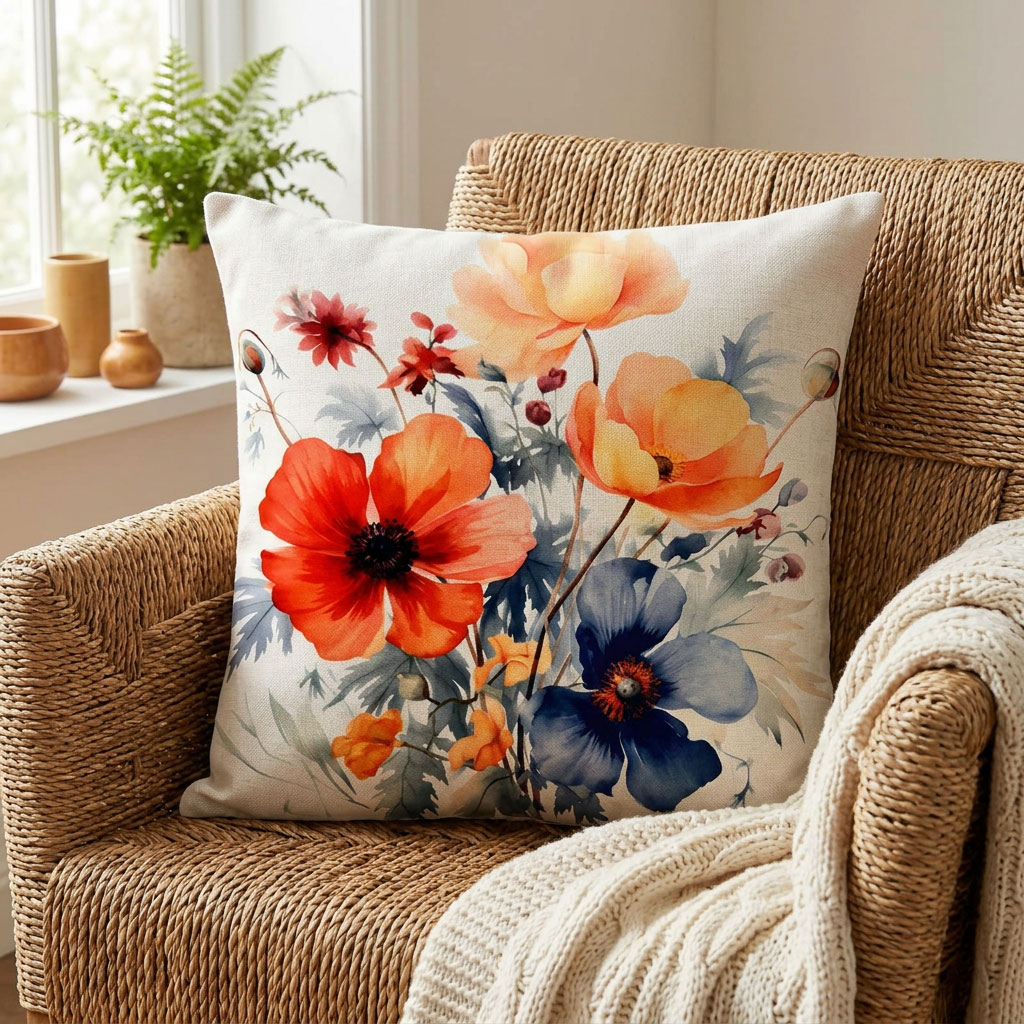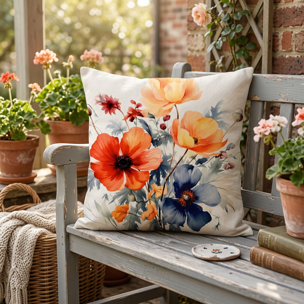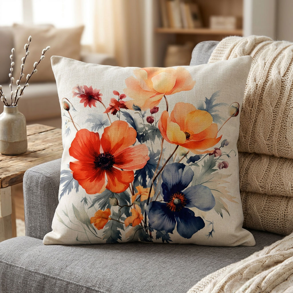 Тези декоративни калъфки са създадени за хора, които ценят детайла и емоцията в интериора. Винтидж флоралният мотив, съчетаващ топли оранжеви, нежни кремави и дълбоки сини нюанси, напомня за ръчно рисувана градина – жива, естествена и вдъхновяваща.