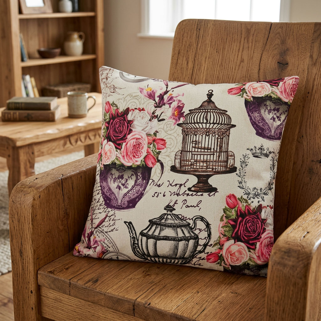 Тези декоративни калъфки са създадени за хора, които ценят не просто красивия интериор и атмосферата, която той създава. Винтидж мотивите – деликатни рози, ретро чайник и изящна клетка – носят усещане за романтика, спокойствие и вдъхновение от отминали епохи. Това е декор, който разказва история.
