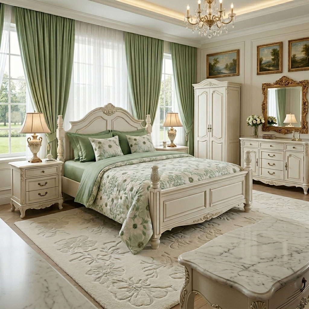 По отношение на стила, Утринна градина се вписва естествено в скандинавски, модерен, прованс или класически интериор. Може да бъде съчетан с пердета в екрю или светло зелено, декоративни възглавници в бежово, салвия или пастелно сиво, както и с одеяла от памук или плетена текстура за допълнителен уют.