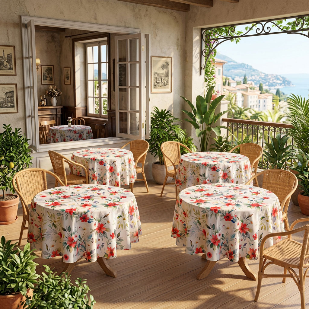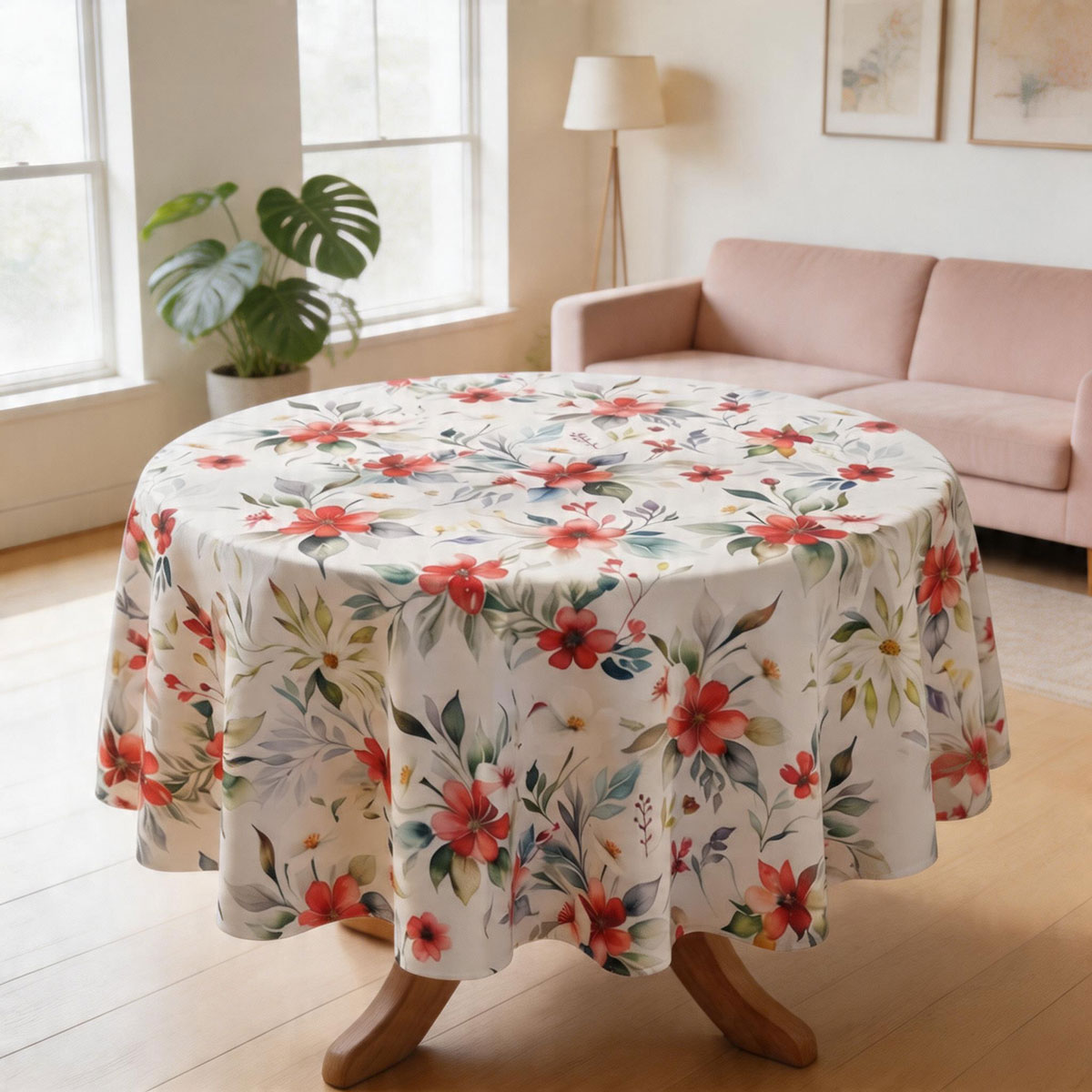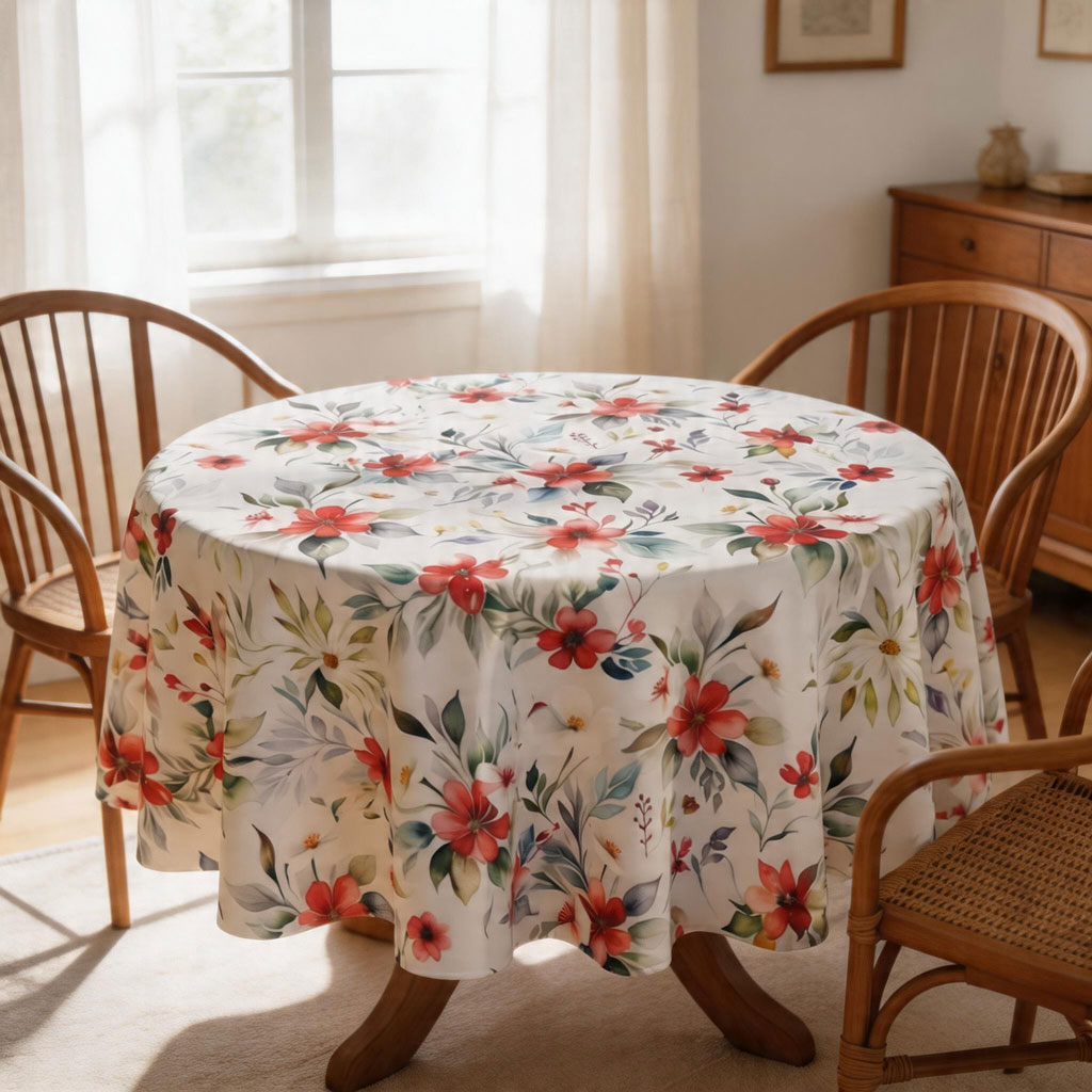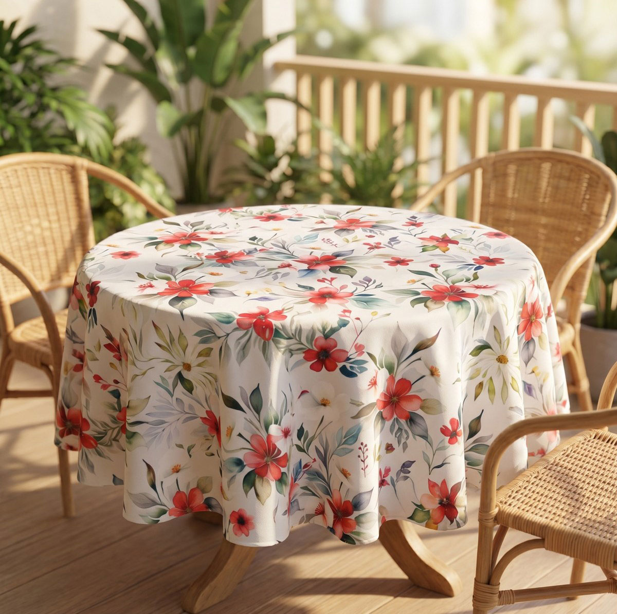 Тази водоустойчива покривка е създадена за пространства, в които комфортът и естетиката вървят ръка за ръка. Десенът комбинира топли червени цветя, зелени листа и фино балансиран светъл фон – визуален език, вдъхновен от природата и усещането за спокойствие. Цветовете са подбрани така, че да придават живот, без да натоварват интериора – баланс между свежест и класика.