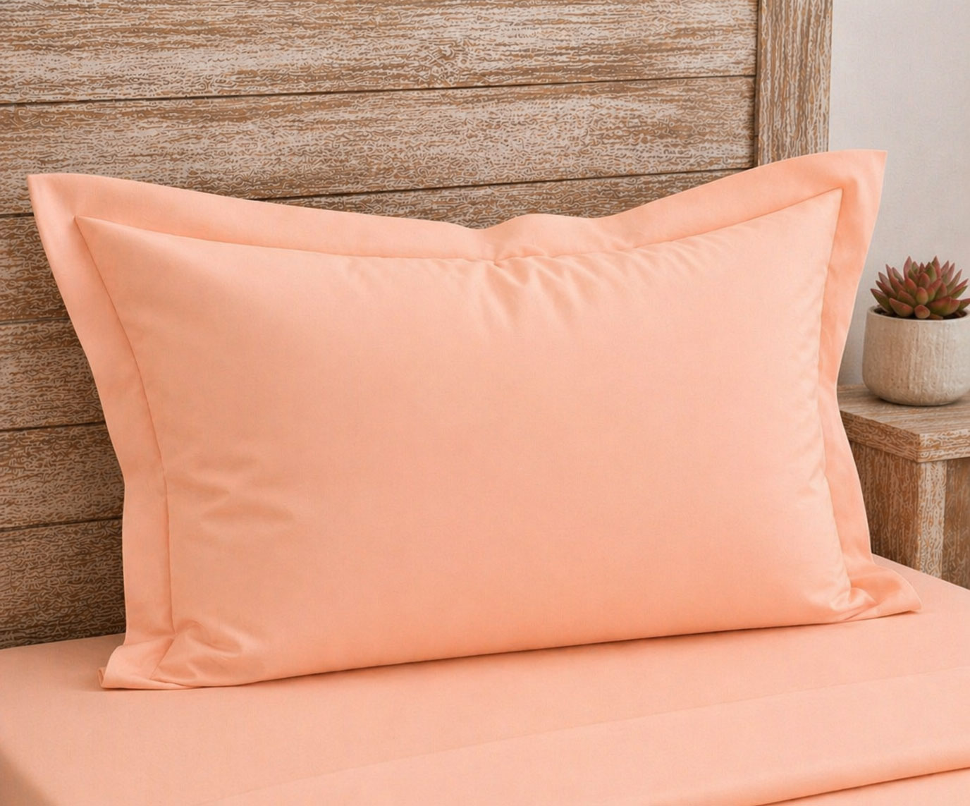 Калъфки за възглавница - цвят праскова. Лесно се съчетава с пъстри комплекти спално бельо, или с едноцветни чаршафи. Ушити е от хасе, фин 100% памучен плат.