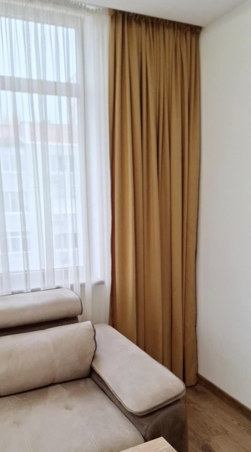Готови за плътни пердета в светлокафява-бежова гама. Цветове са наситени, нюансите са ясно различими. Съчетават се чудесно с тънки пердета от рисуван воал, или едноцветен бял - както на снимката. Цветът е класически. Подходящи са за мебели в различен стил и цветове.